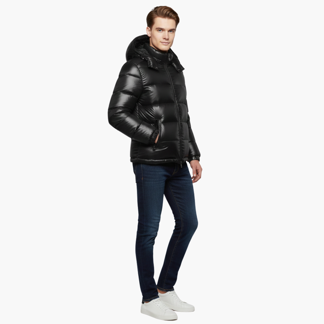 Men's Quilted Jacket with High Collar and Zipped Pockets