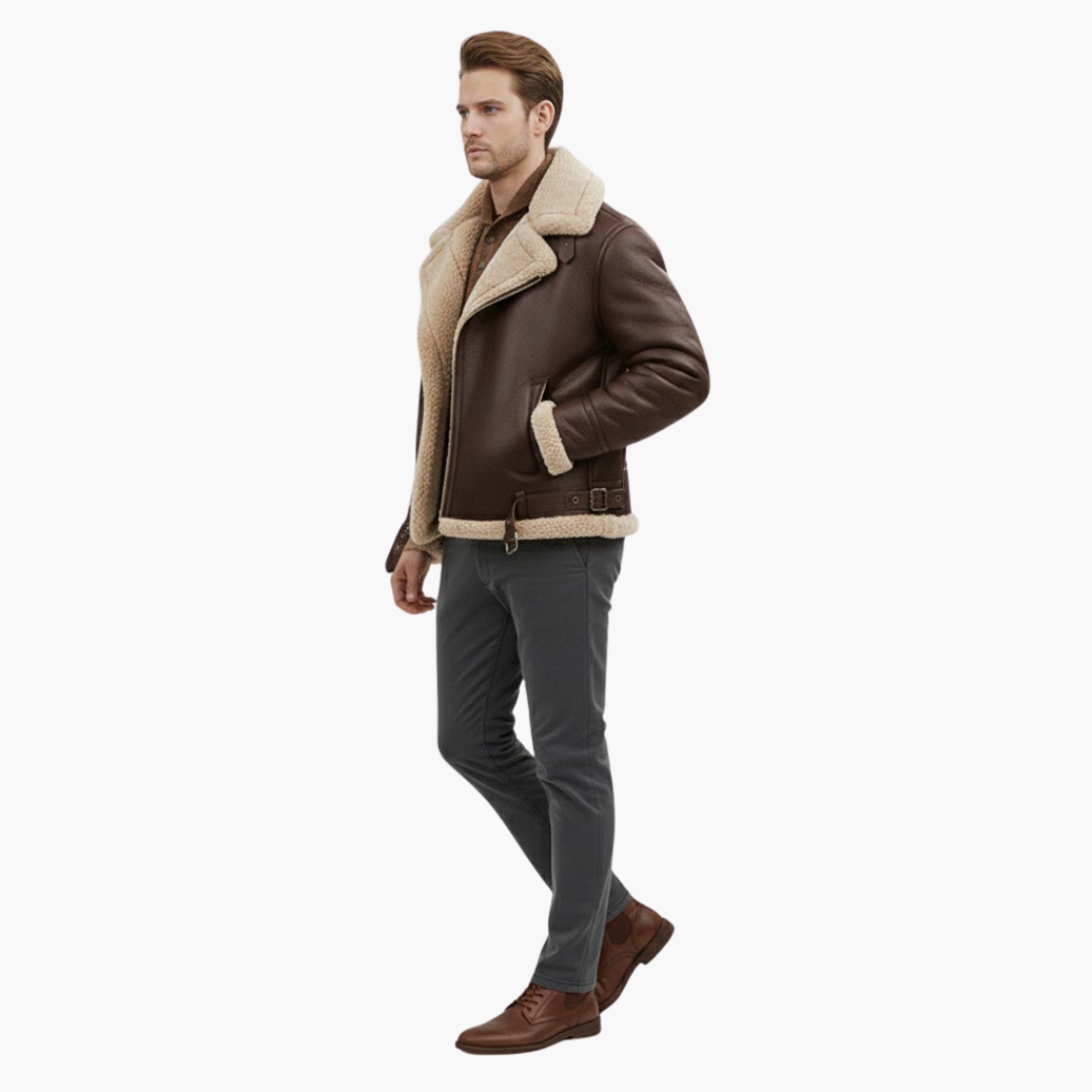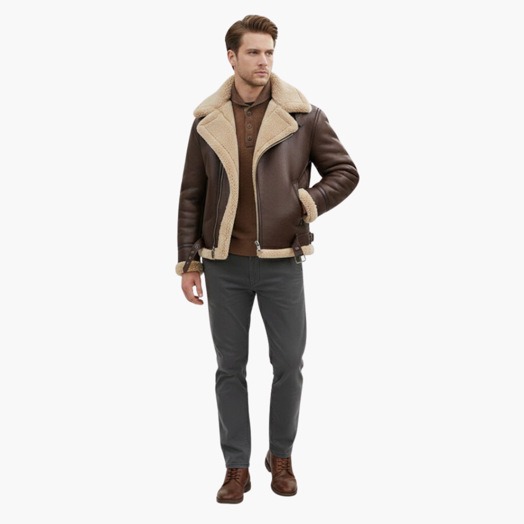 Men's Aviator Jacket with Shearling-Look Collar and Zipper Closure