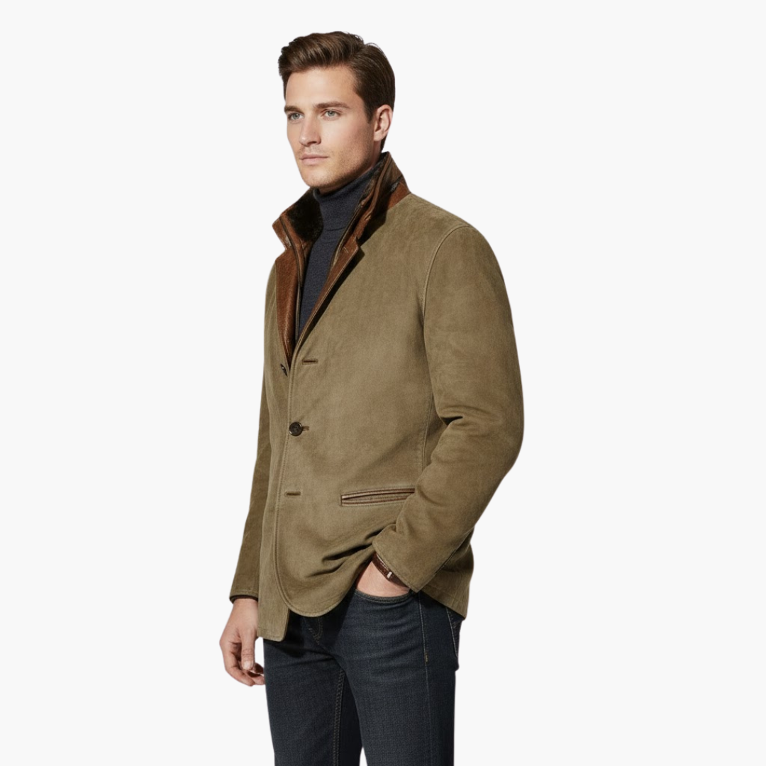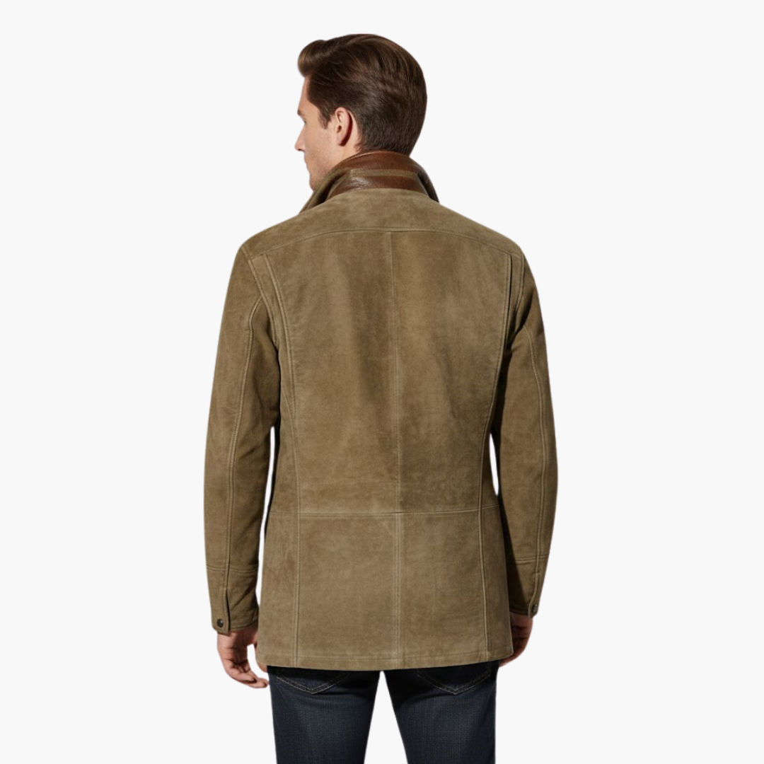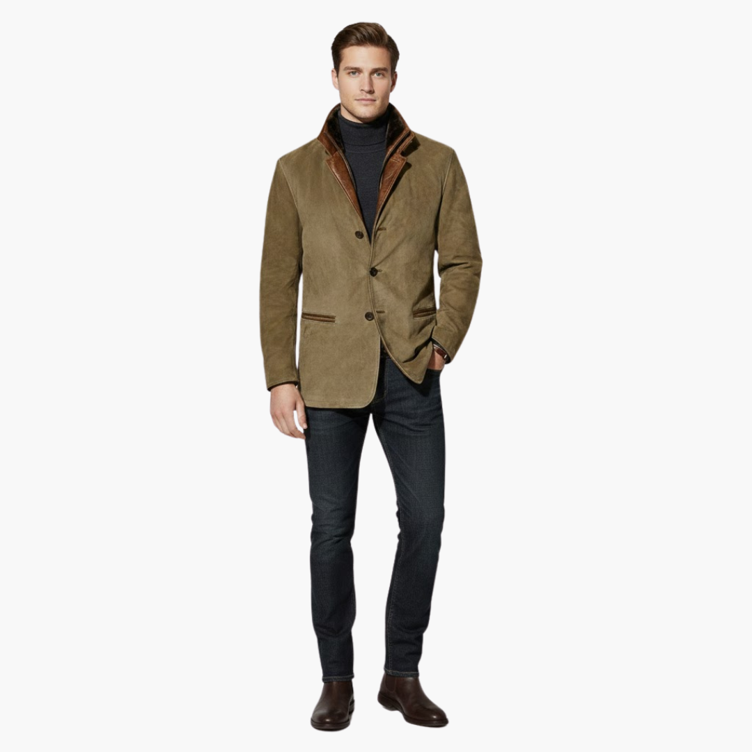 Men's Retro Style Jacket with Button Closure and Contrasting Collar