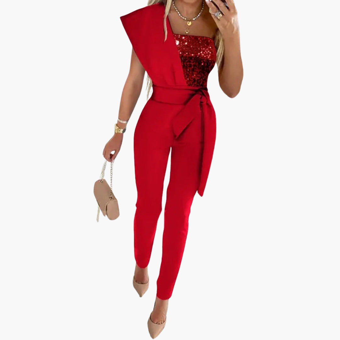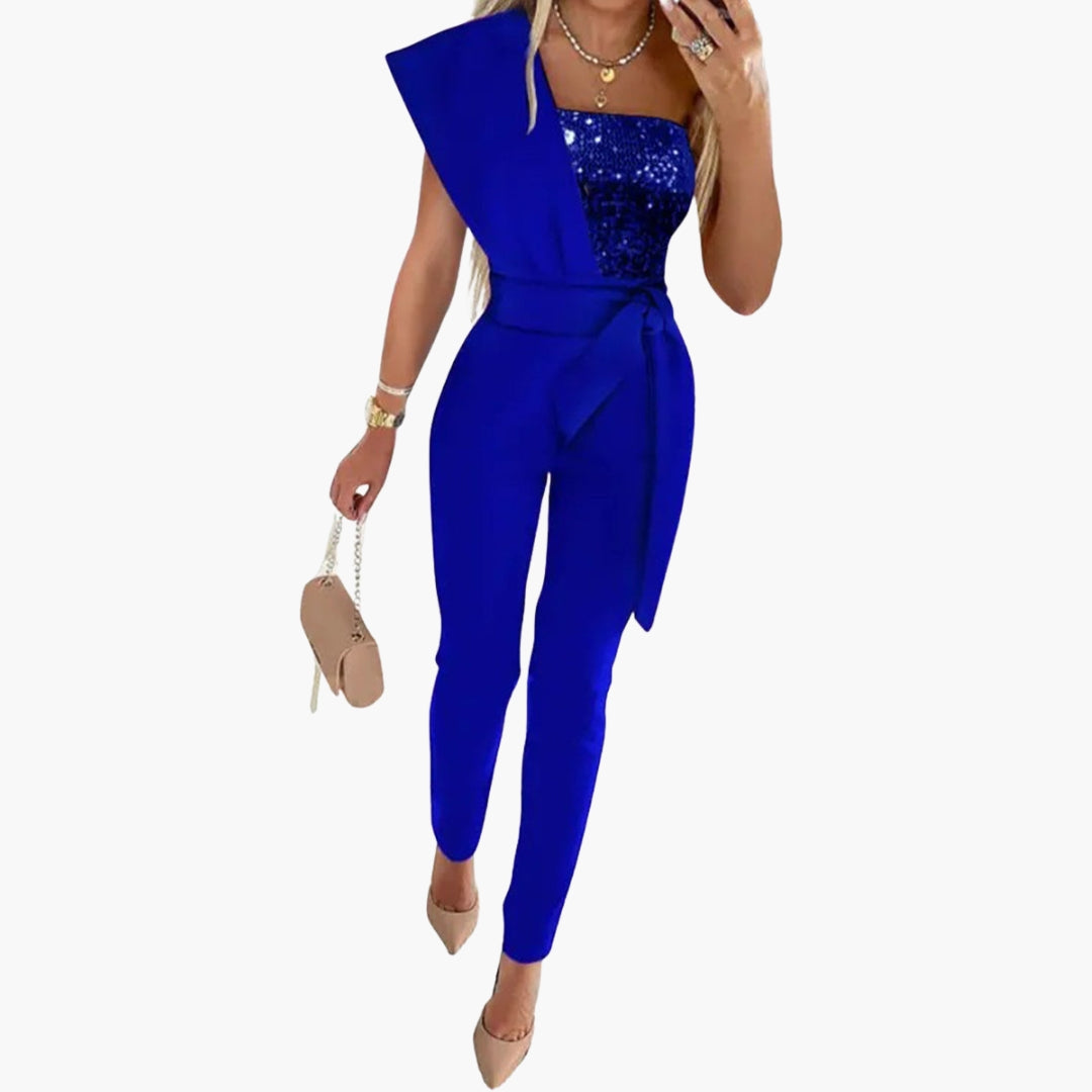 Women’s One-Shoulder Jumpsuit with Glittery Surface