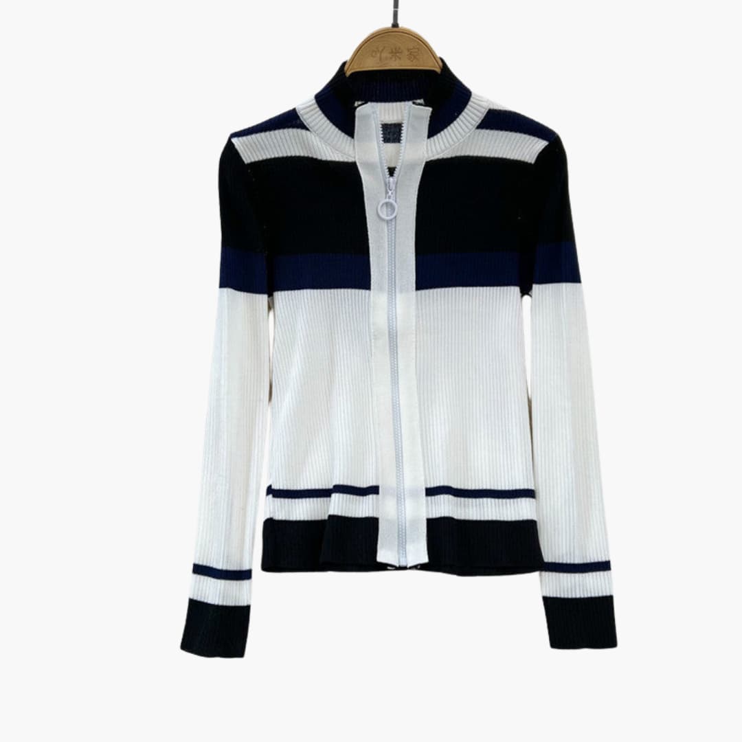 Women's Zip-Up Sweater with High Collar and Ribbed Knit
