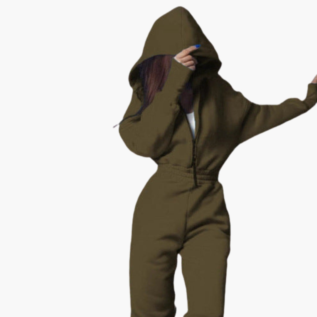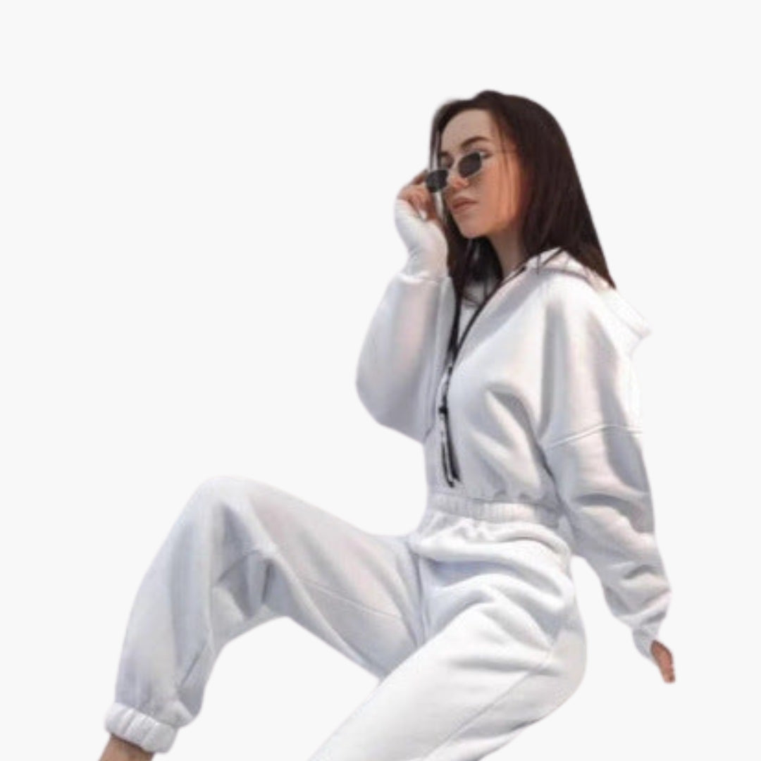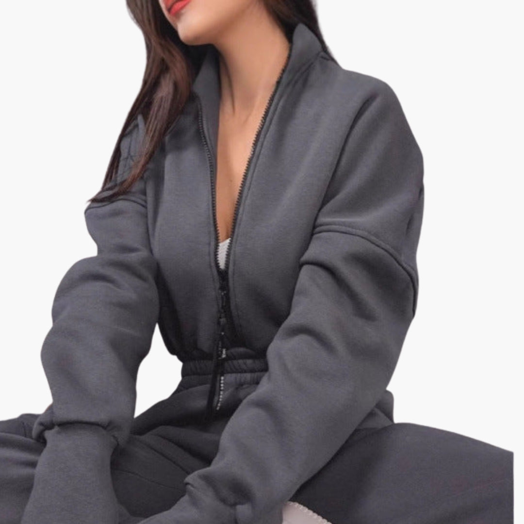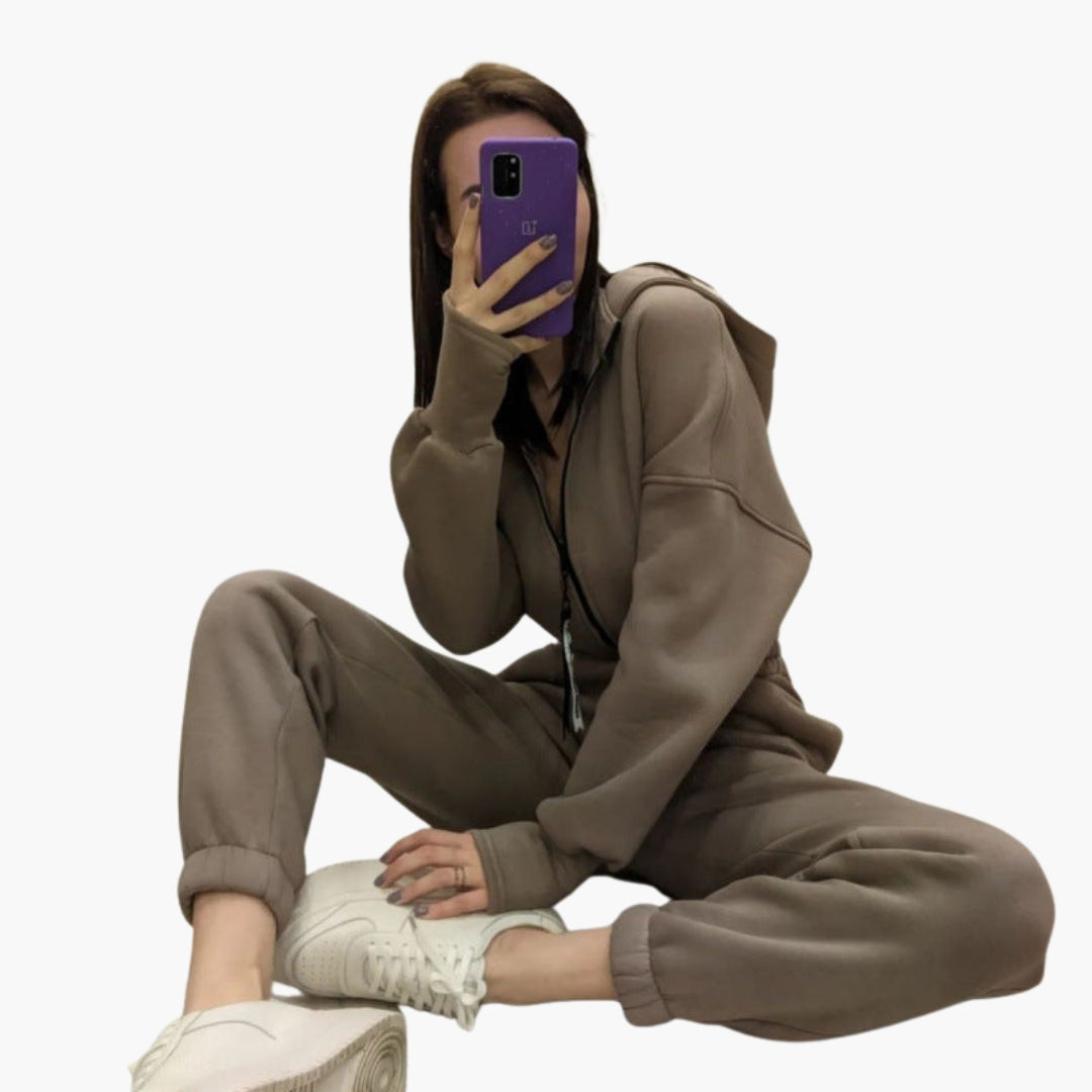 Women's Zip-Up Hooded Sweatshirt Set with Side Pockets