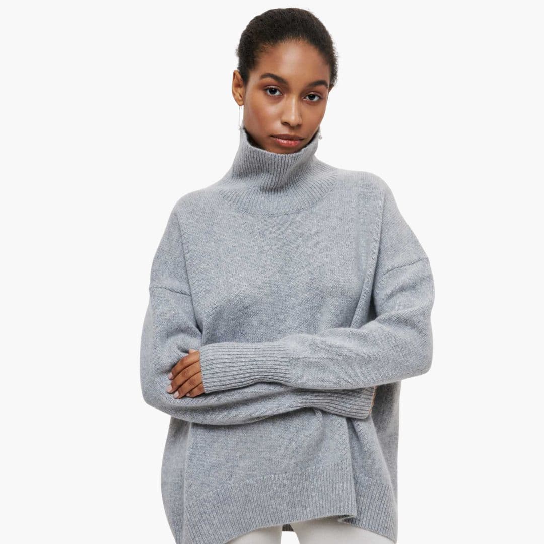 Women’s Knit Sweater with High Neck and Ribbed Hem