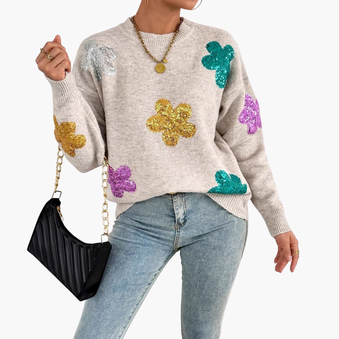 Women's V-Neck Sweater with Sequins and Long Sleeves