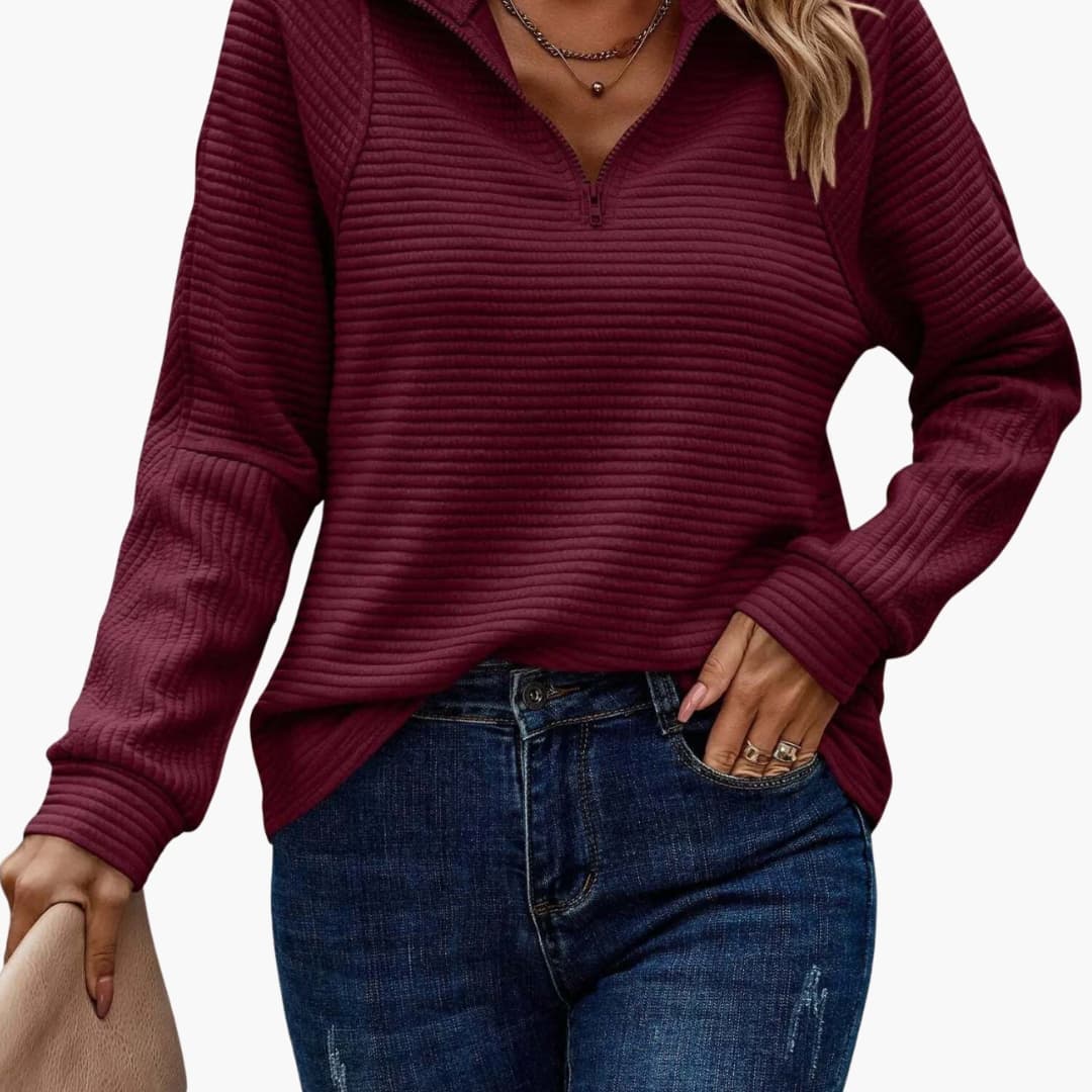 Women's Zip Pullover with Striped Pattern and Textured Surface