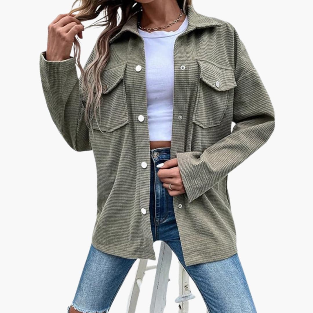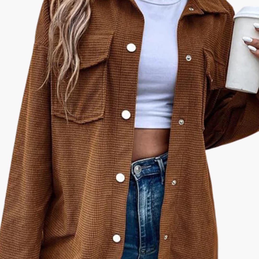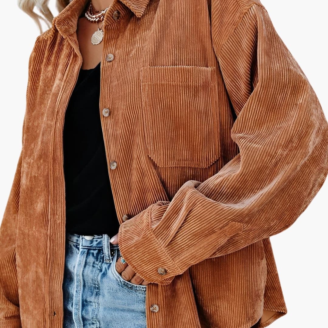 Women’s Corduroy Shirt Jacket with Button Closure and Chest Pocket