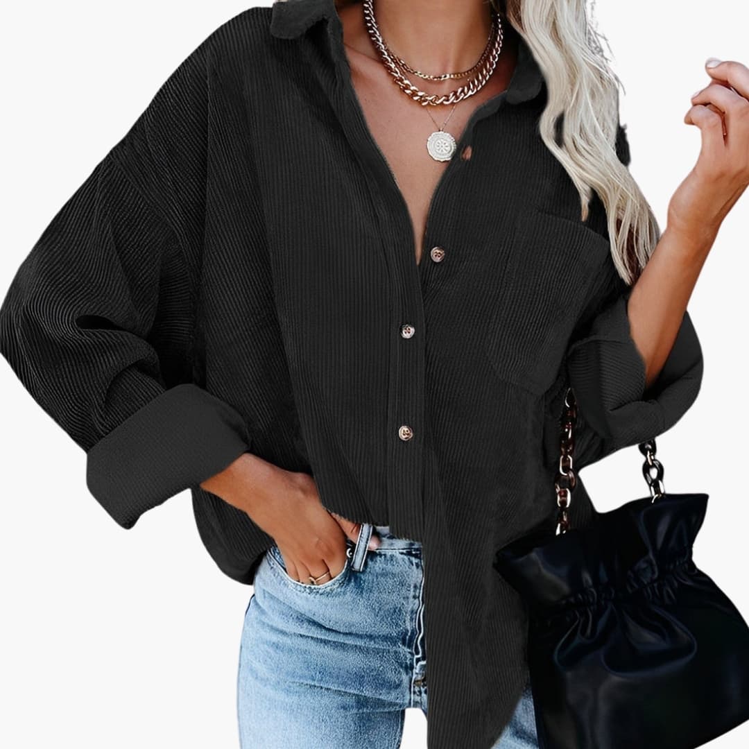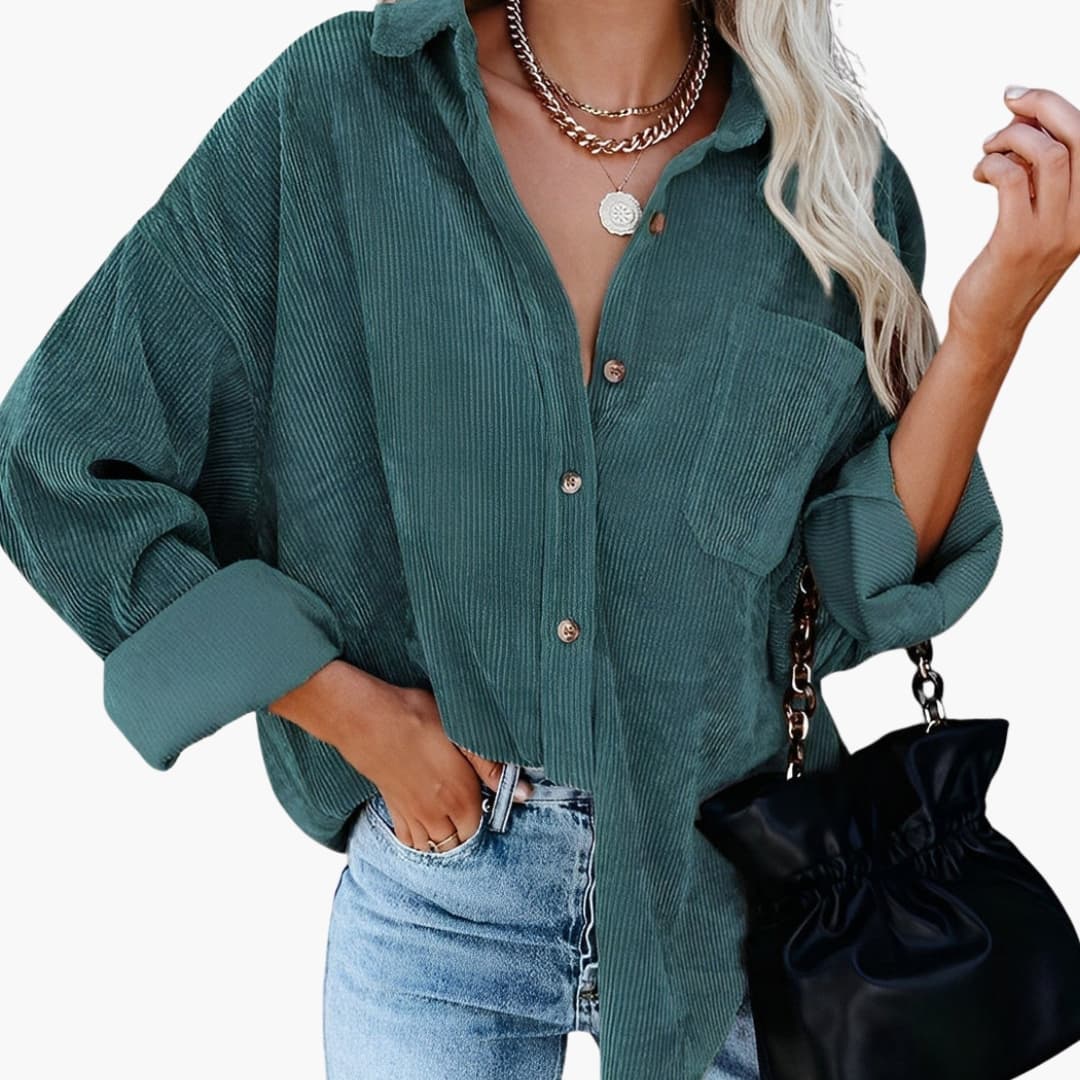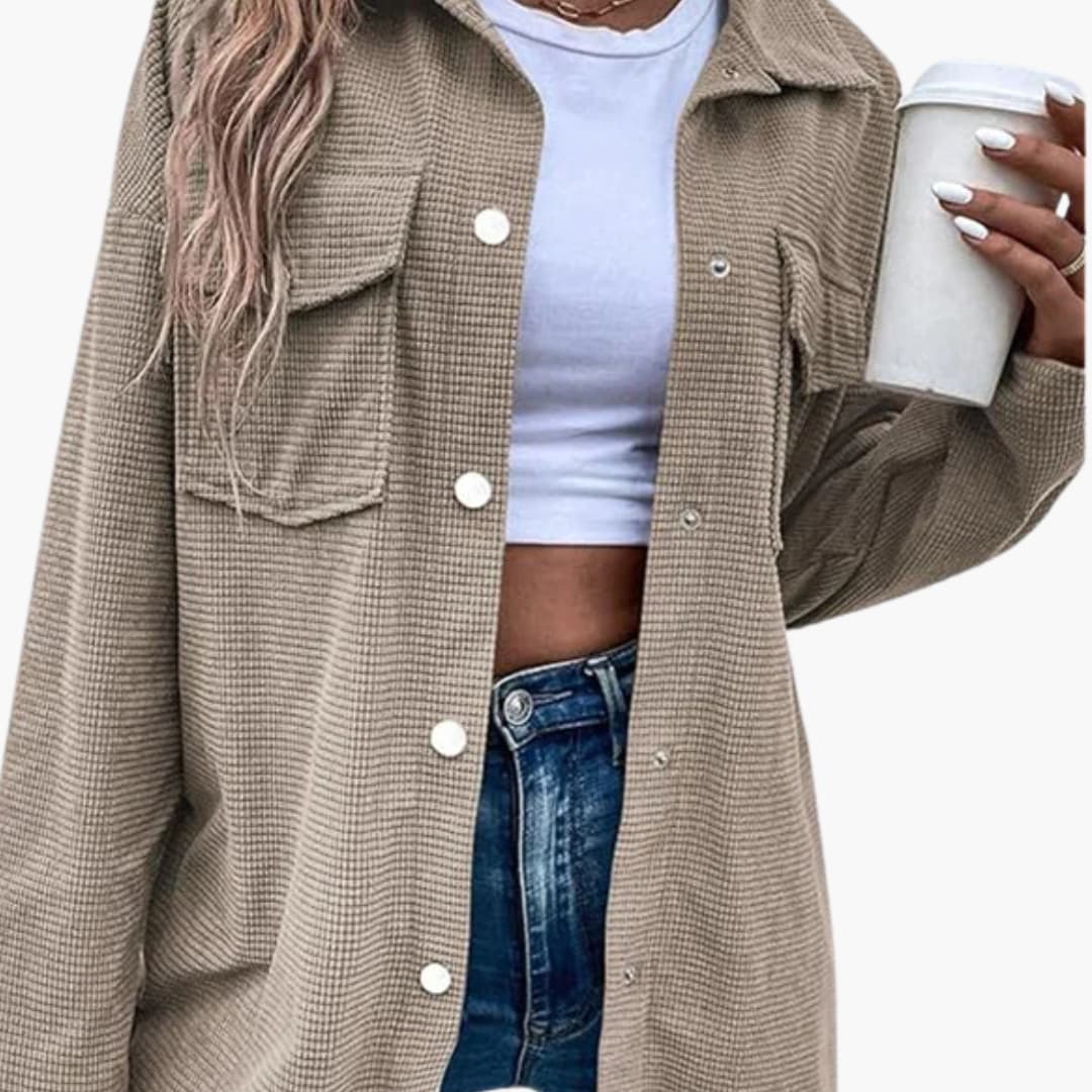 Women’s Corduroy Shirt Jacket with Button Closure and Chest Pocket