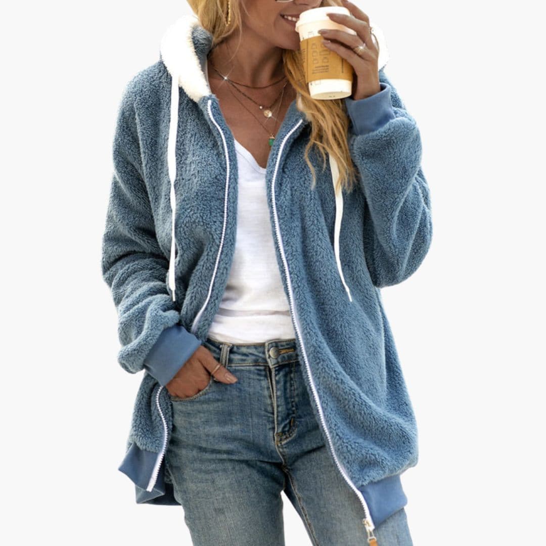 Women's Zip-Up Hooded Coat with Sherpa Lining
