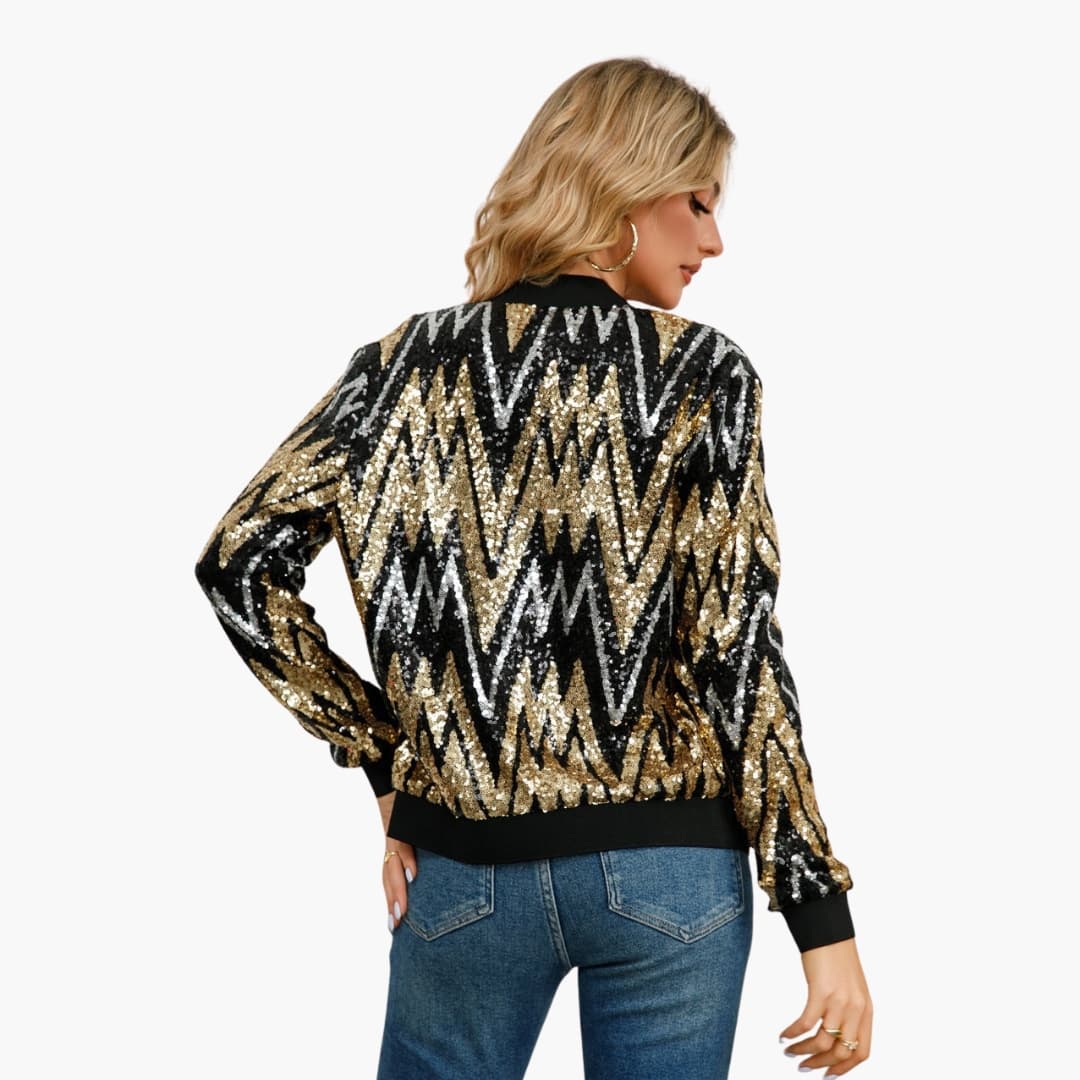 Dámská bomber bunda s flitrovým povrchem a žebrovaným lemem