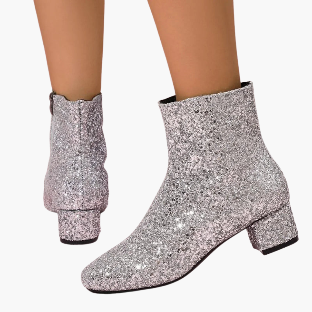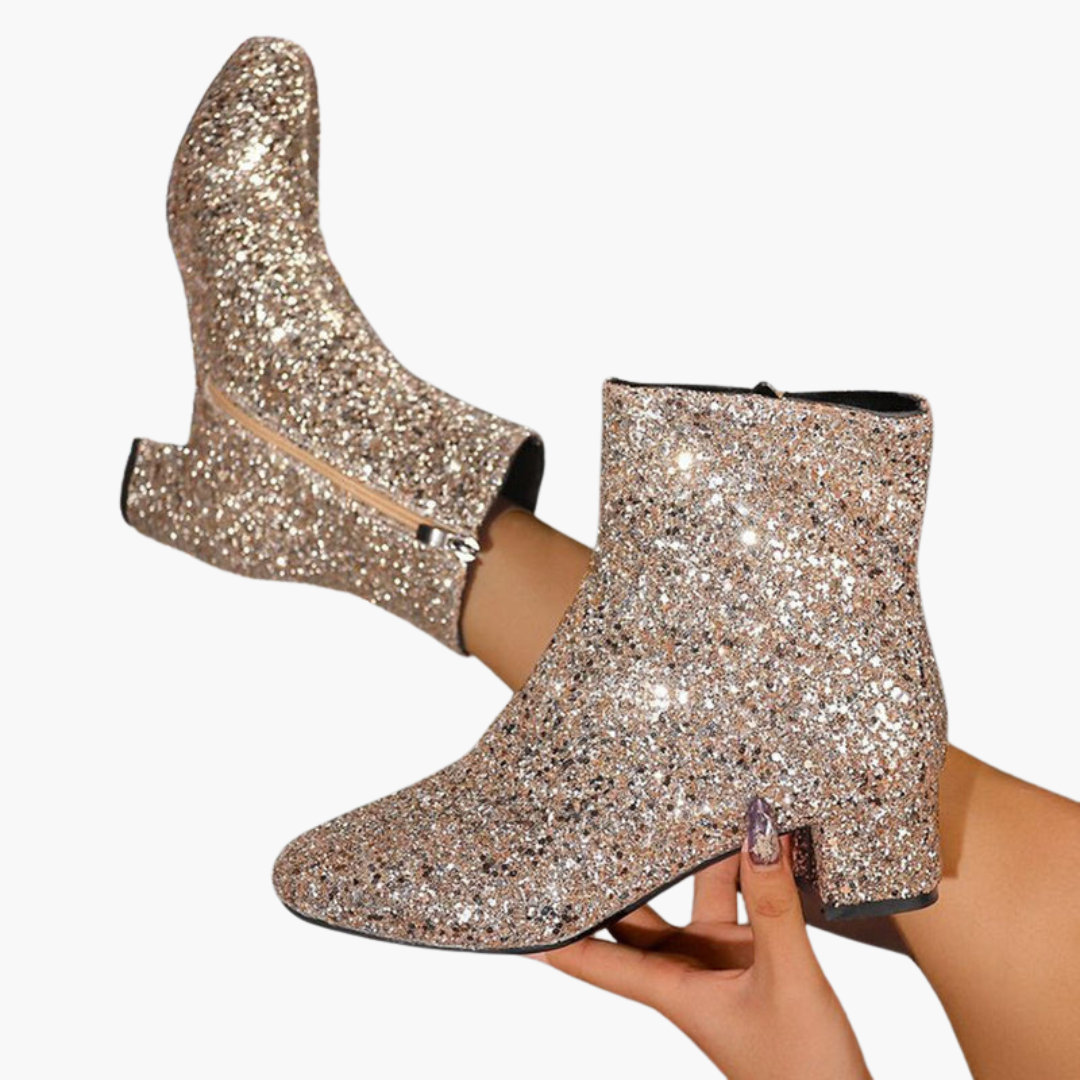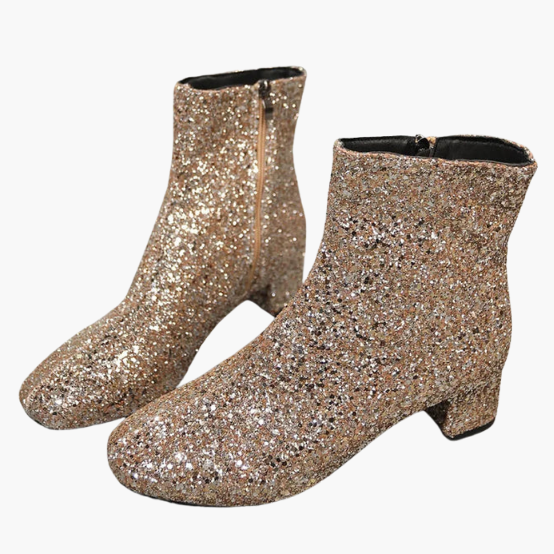 Dámské kotníkové boty s třpytivým svrškem a blokovým podpatkem
