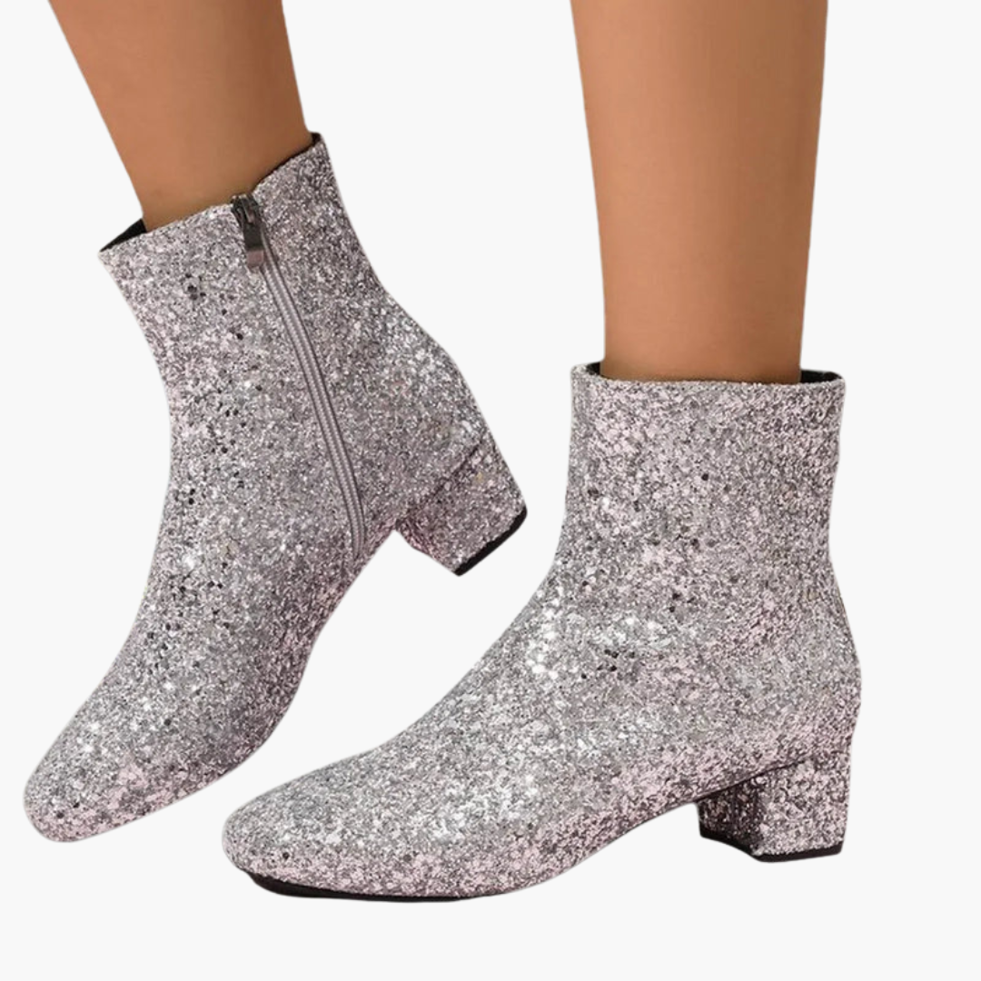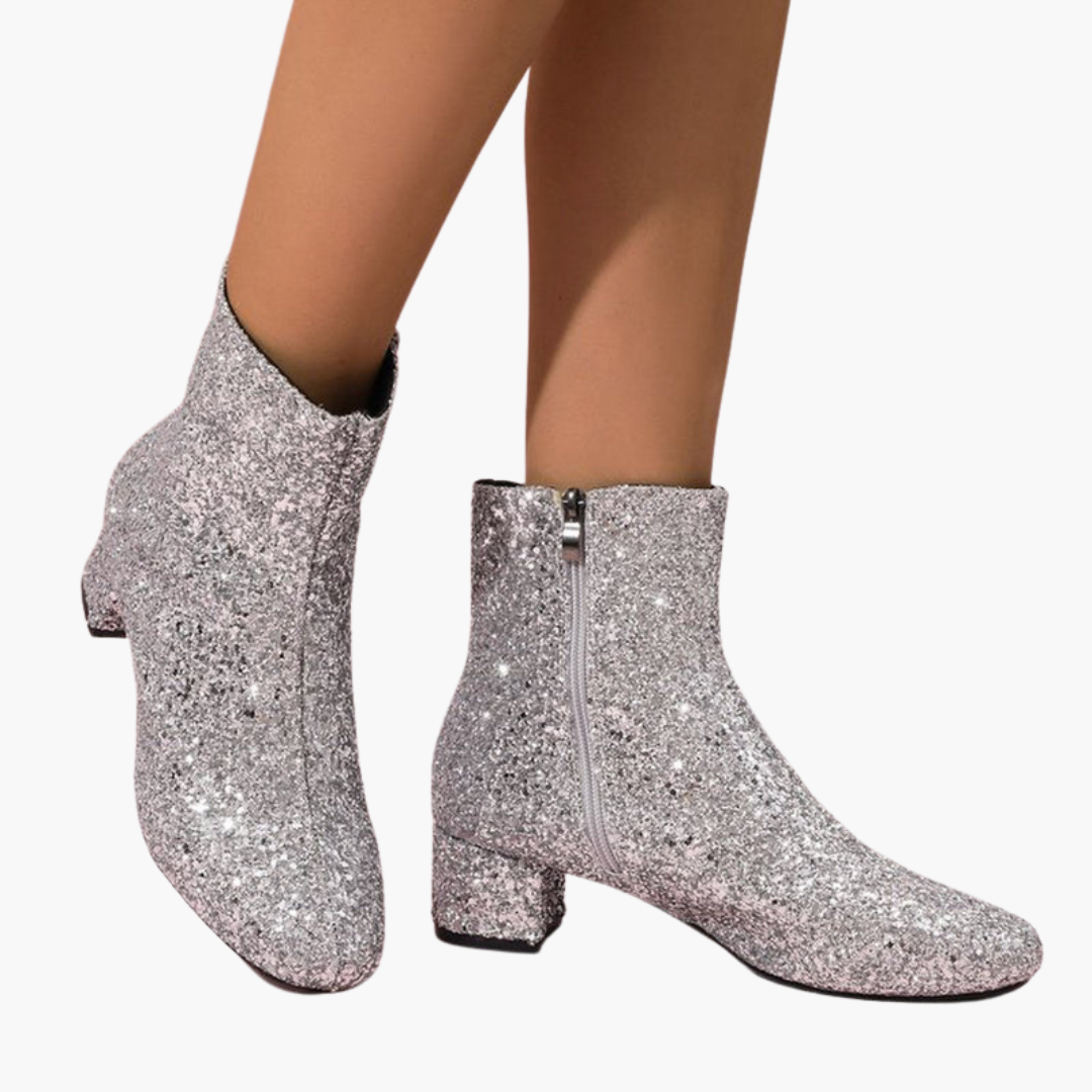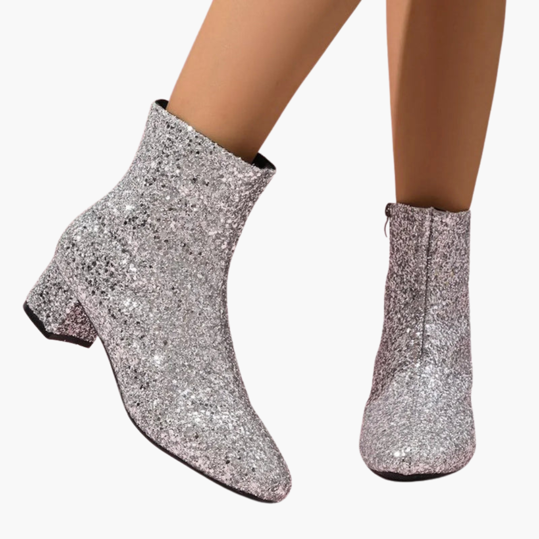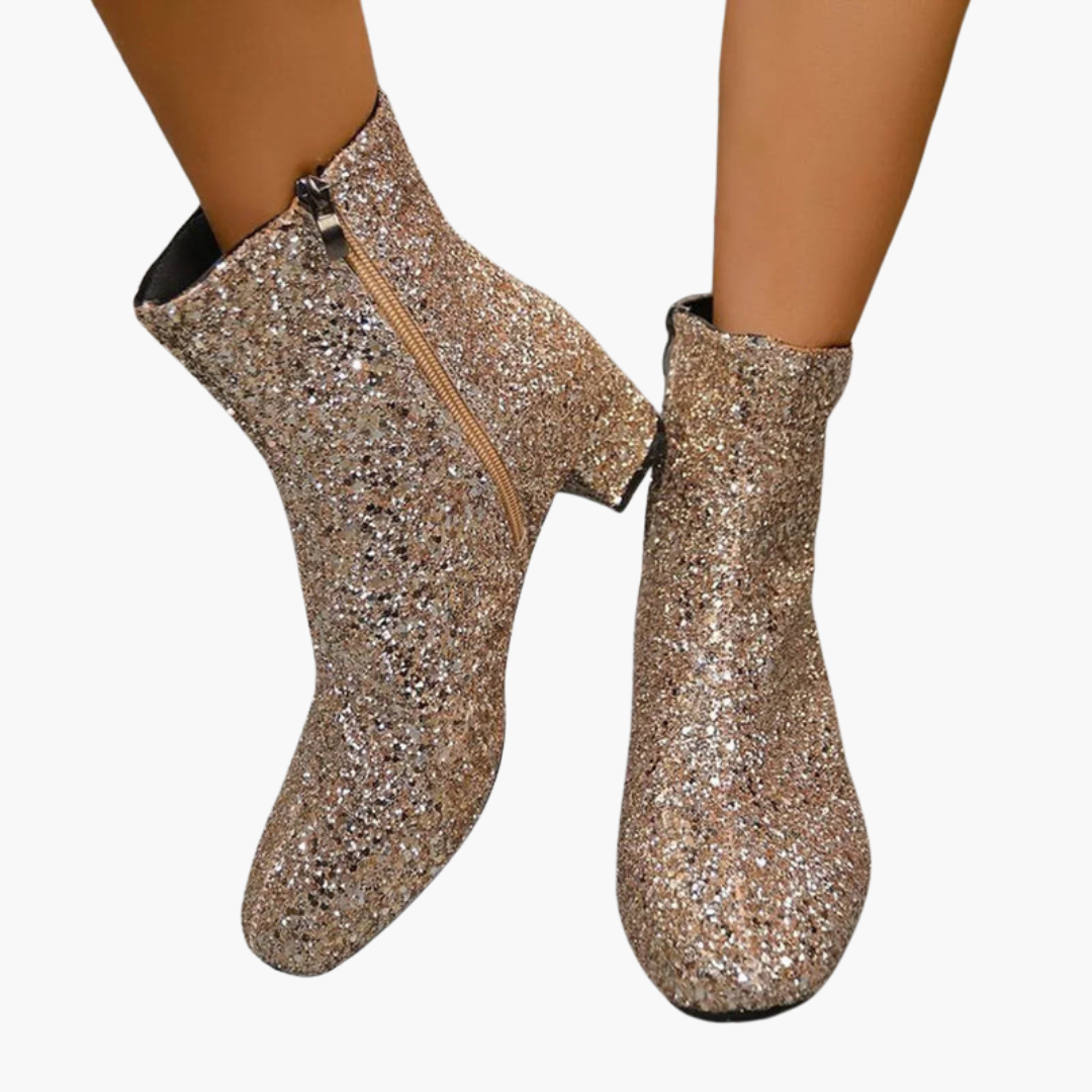 Dámské kotníkové boty s třpytivým svrškem a blokovým podpatkem