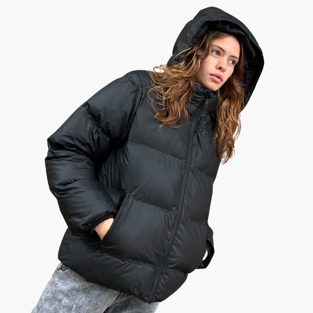 Dámská černá prošívaná bunda s kapucí a výplní