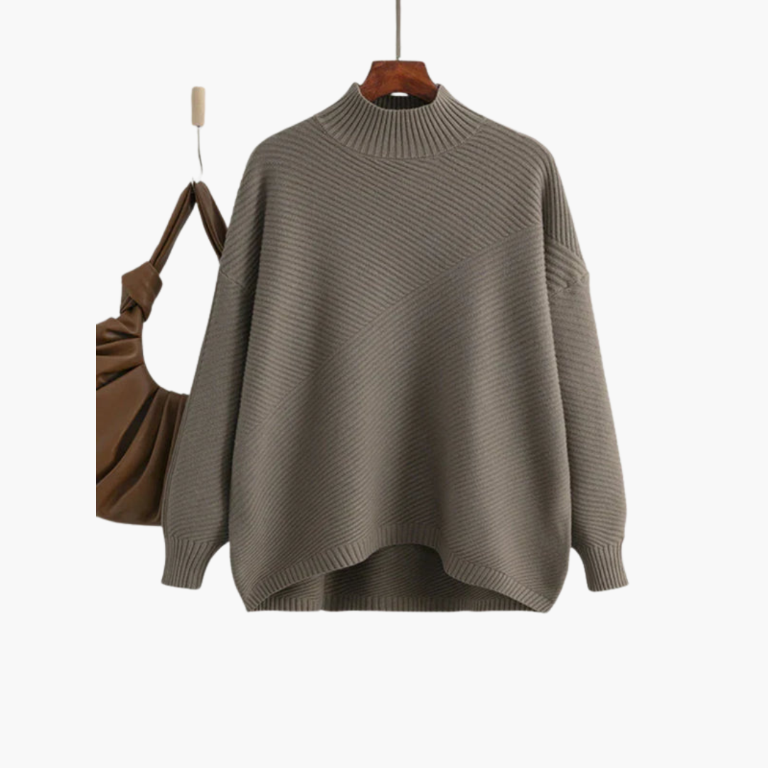 Žebrovaný svetr pro ženy s vysokým límcem a dlouhými rukávy