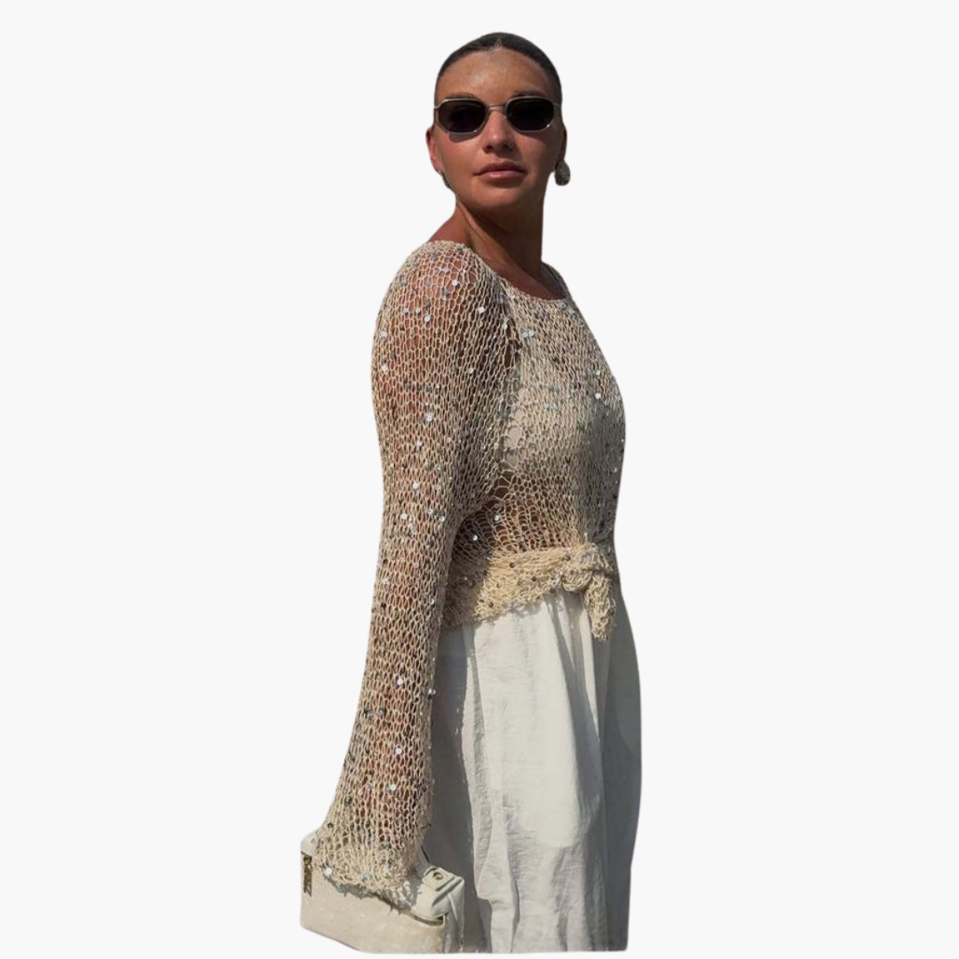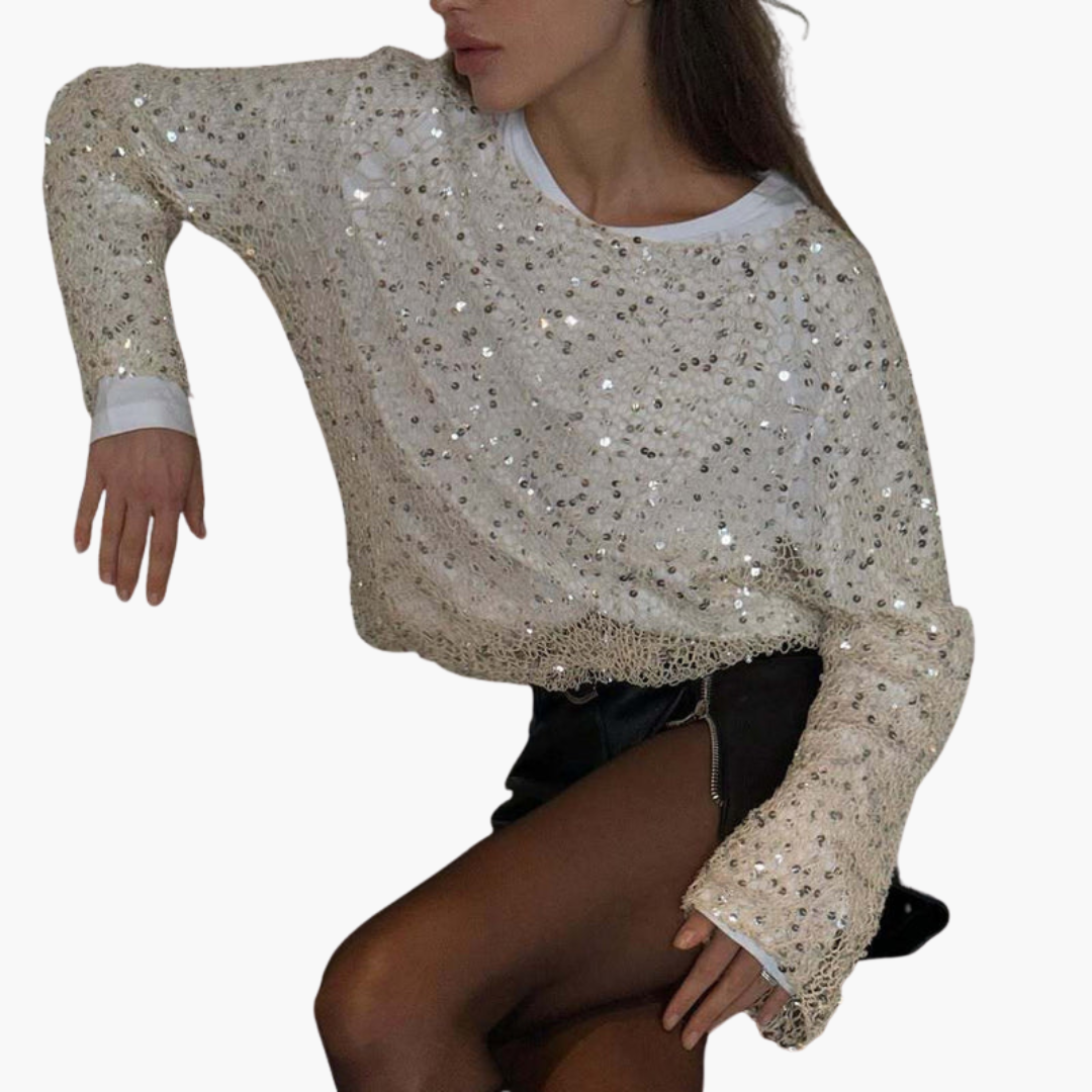 Krátký svetr pro ženy s flitrovým povrchem a dlouhými rukávy