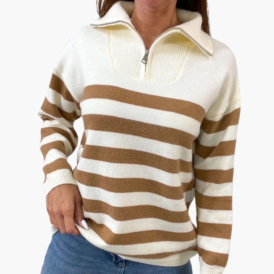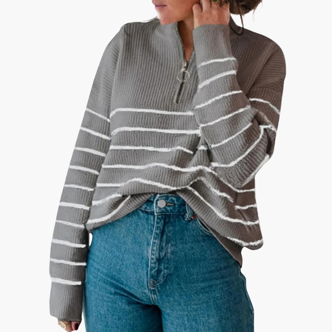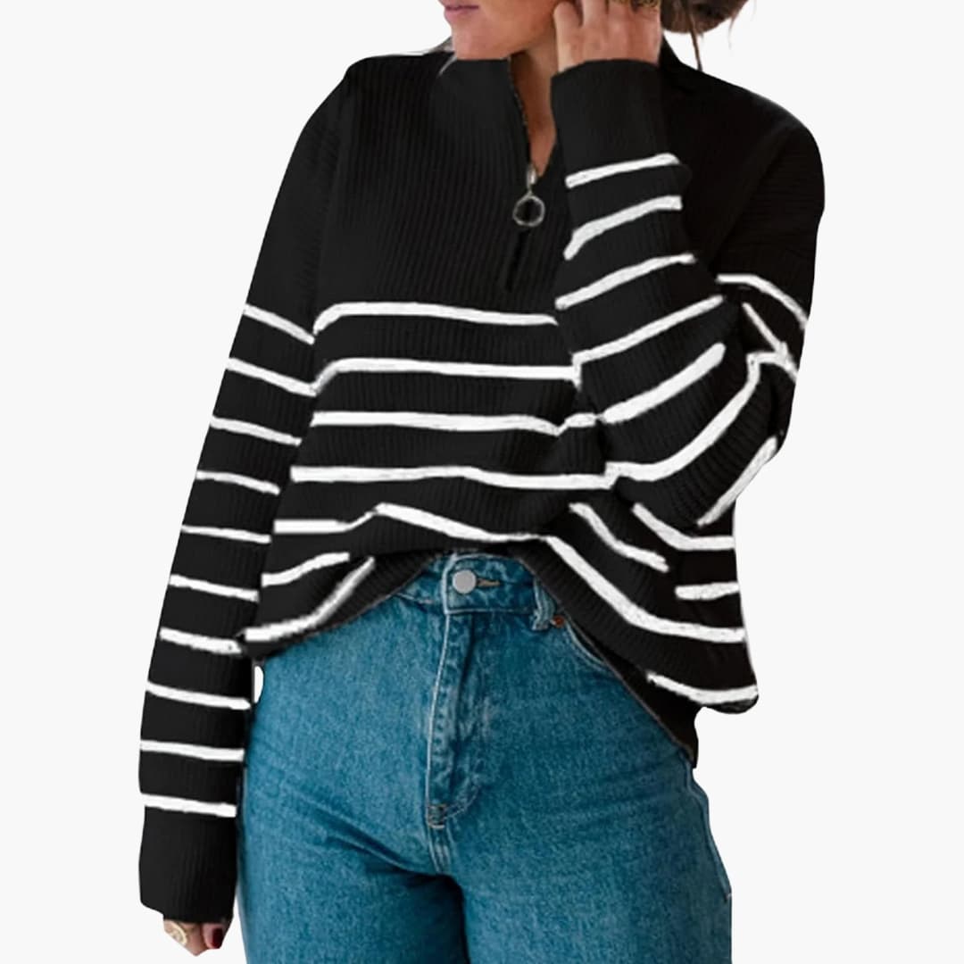 Pruhovaný svetr pro ženy s polovičním zipem a dlouhými rukávy