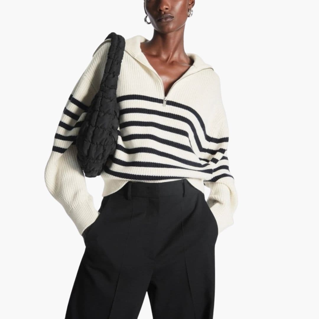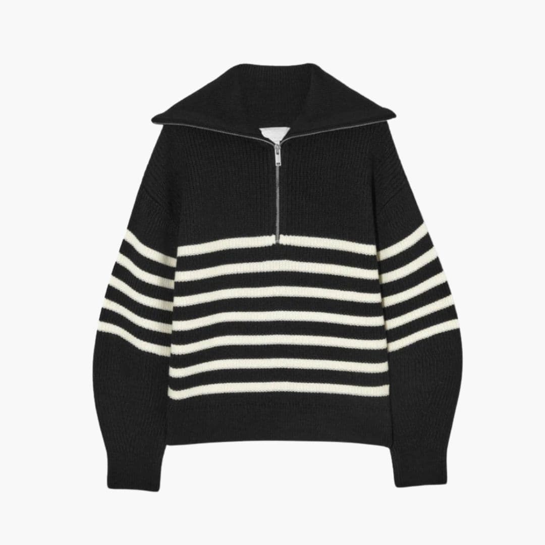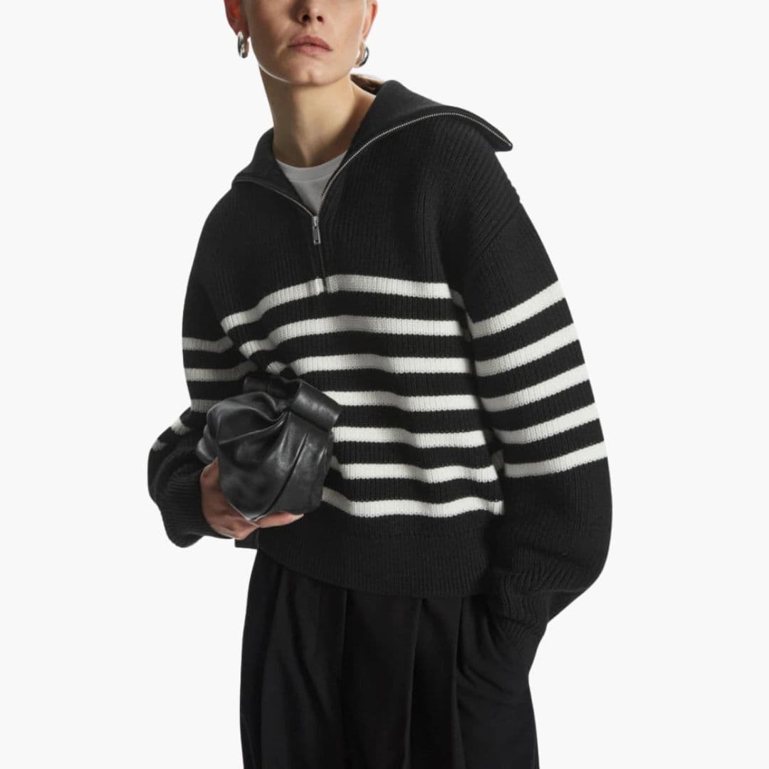 Pruhovaný svetr pro ženy s polovičním zipem a dlouhými rukávy