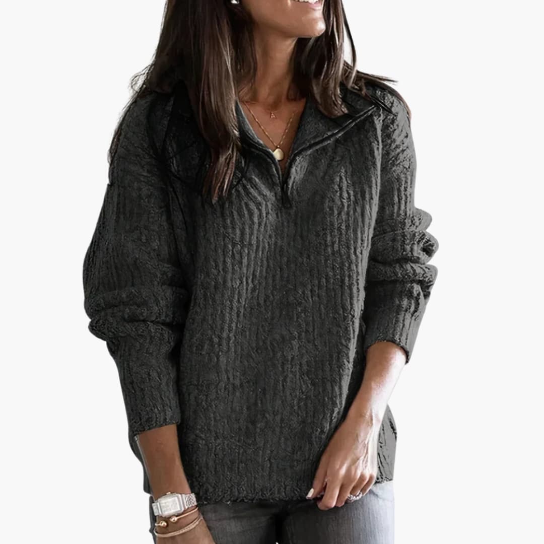 Dámský svetr z texturovaného fleecu s polovičním zipem