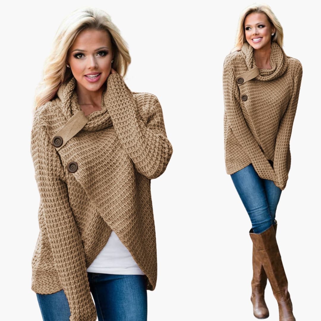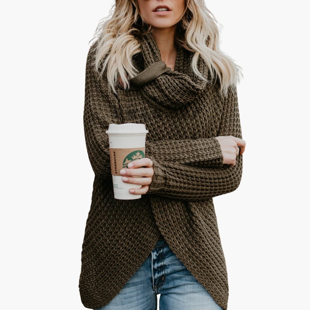 Překrásný dámský pletený svetr s rolákem v nadměrné velikosti