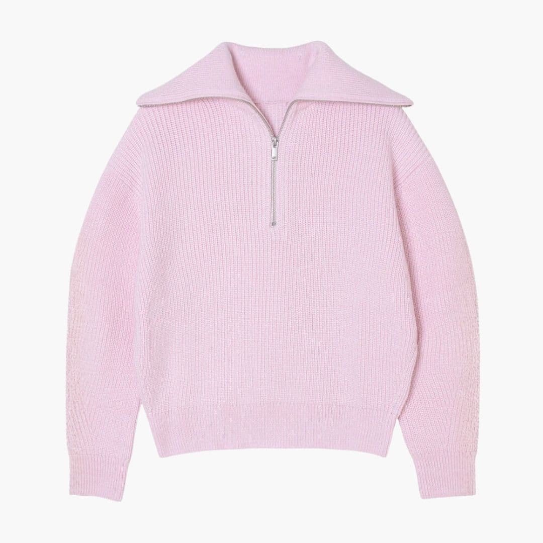 Měkký pletený svetr pro ženy se zipovým límcem