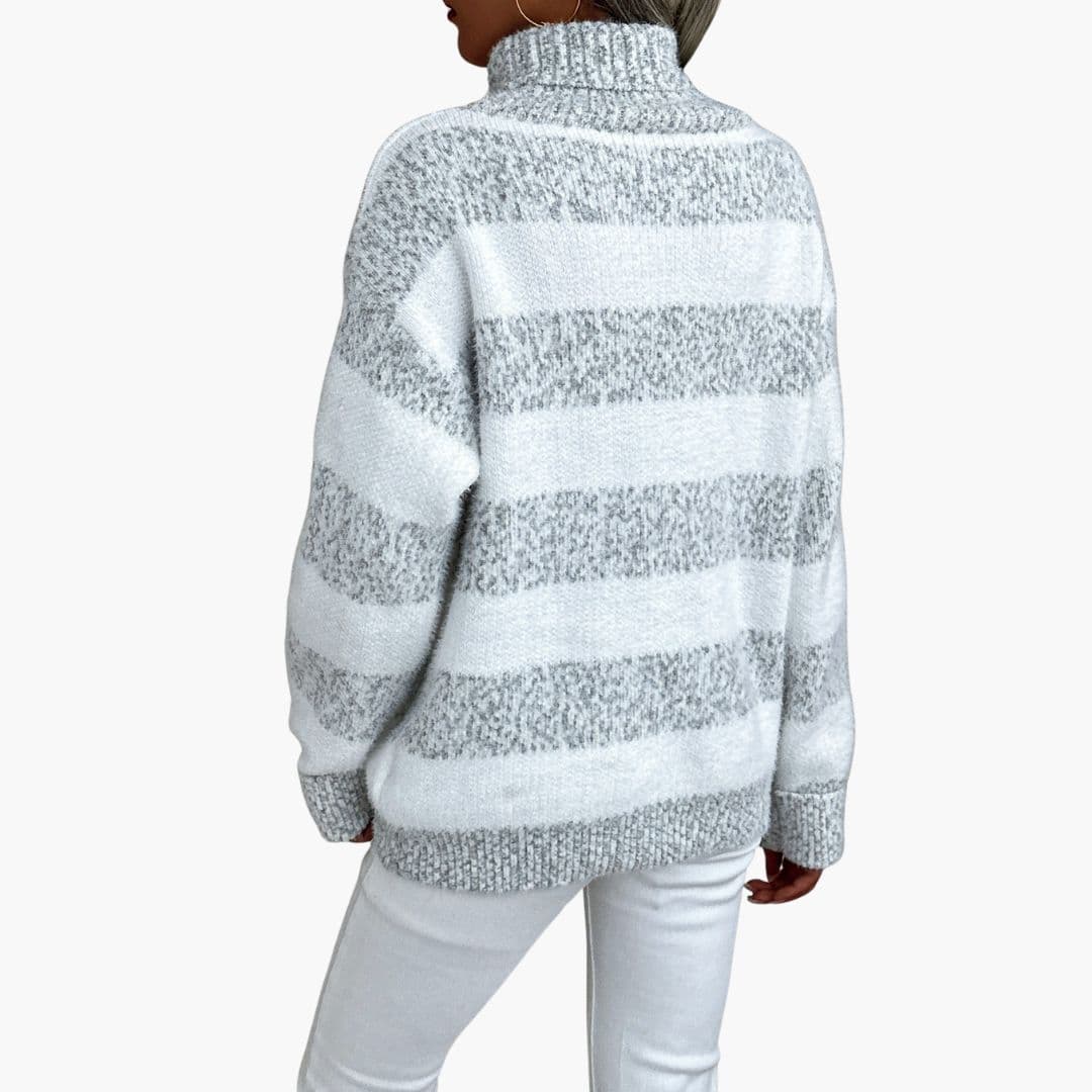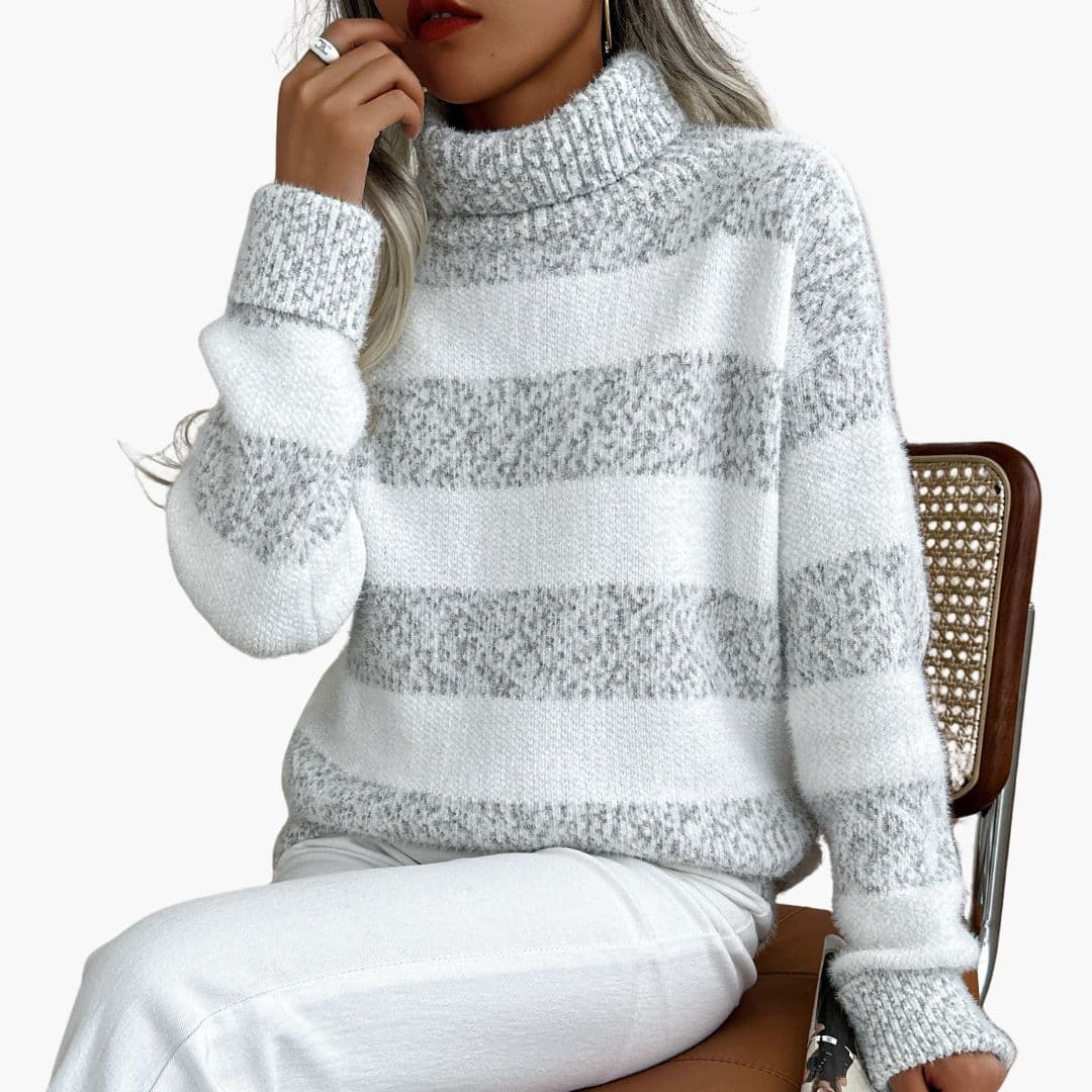 Proužkovaný rolákový svetr s dlouhými rukávy pro ženy