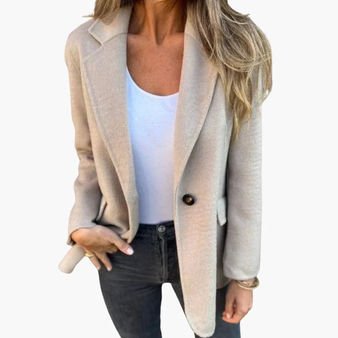 Dámské sako s klopovým límcem a zapínáním na jeden knoflík
