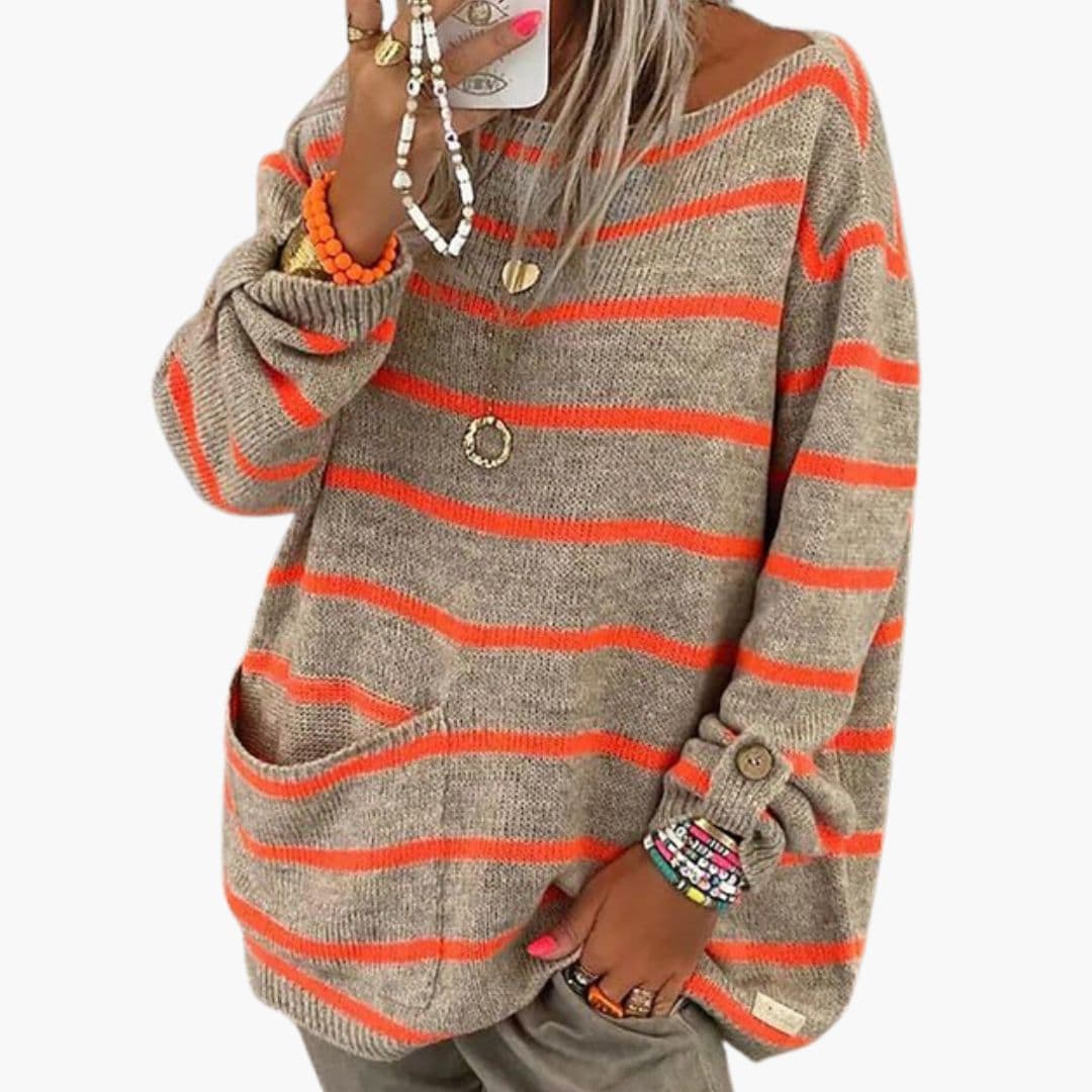 Pruhovaný dámský svetr s přední kapsou