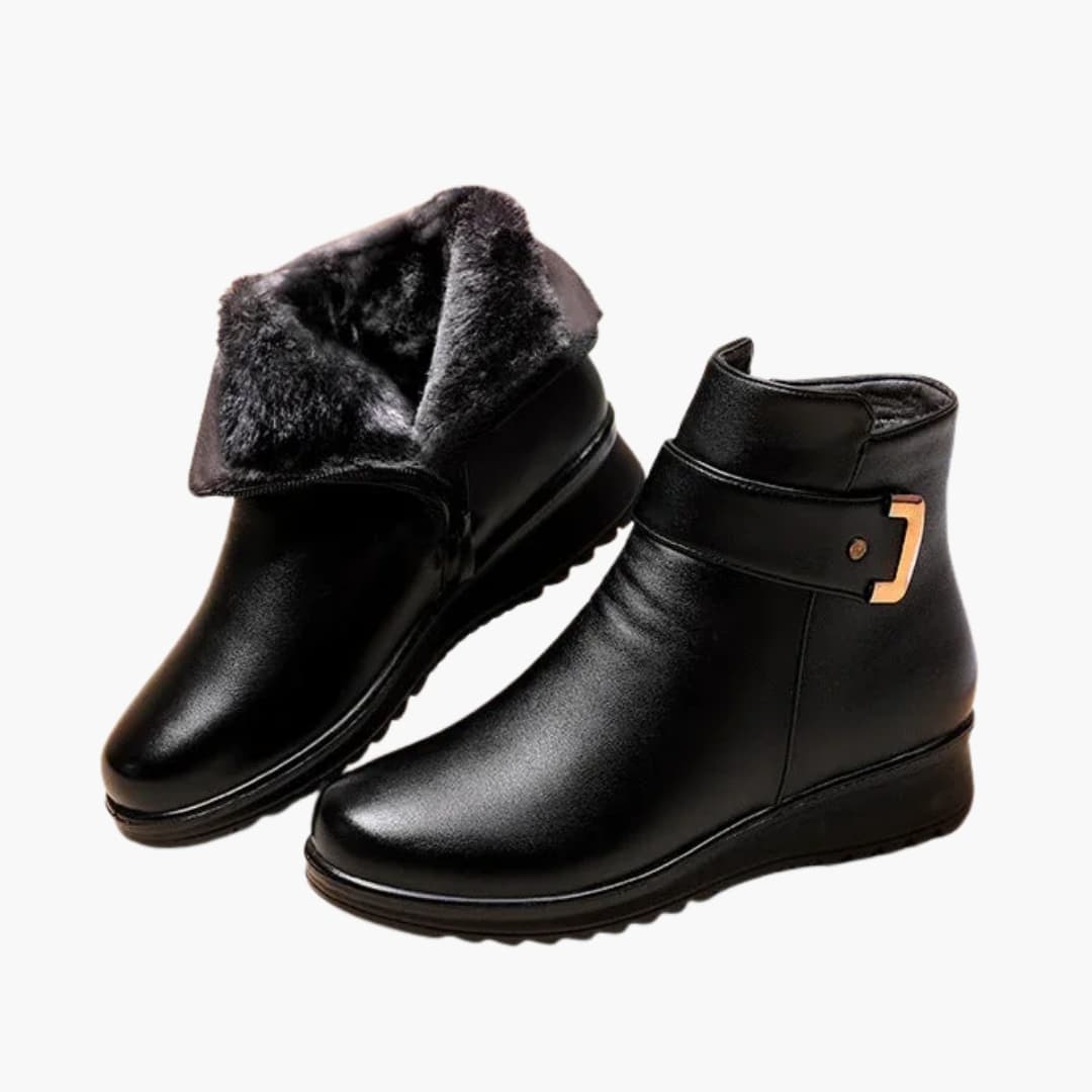 Dámské zimní kotníkové boty s podšívkou z umělé kožešiny a bočním zipem.