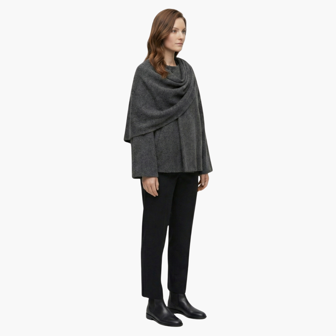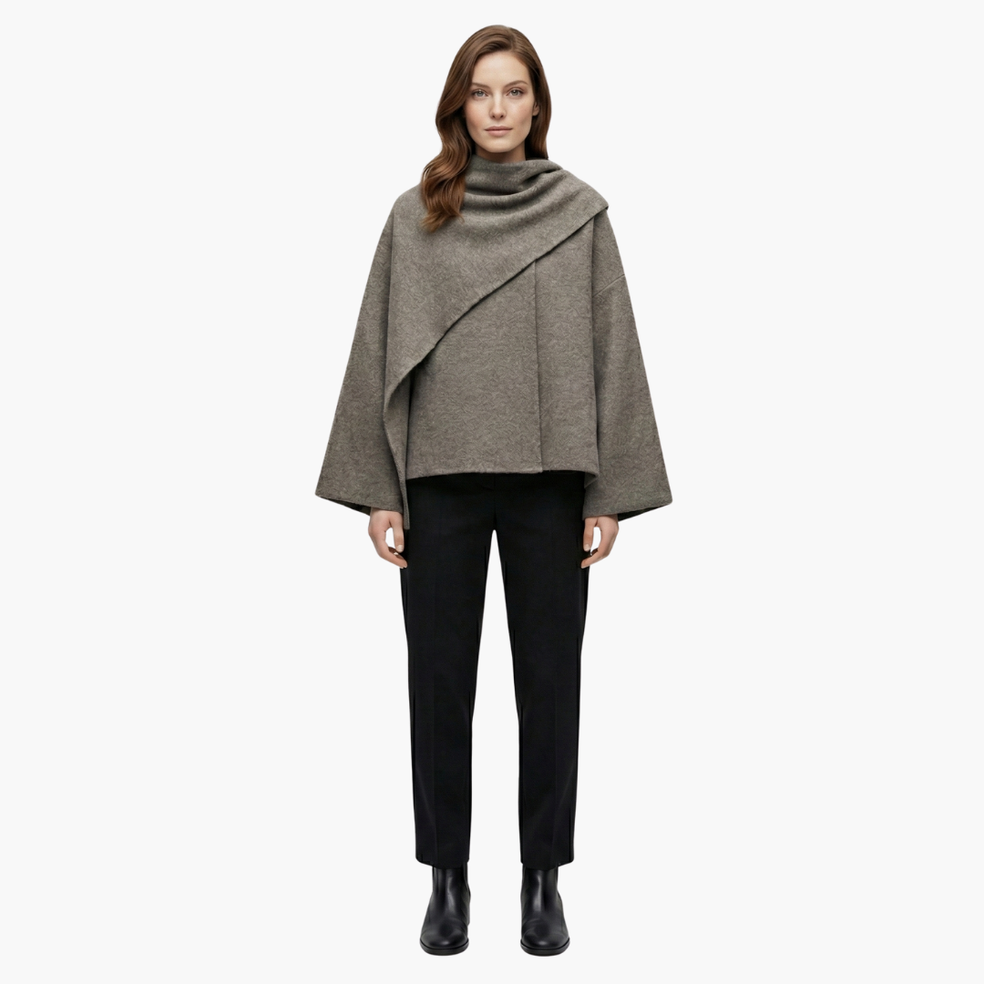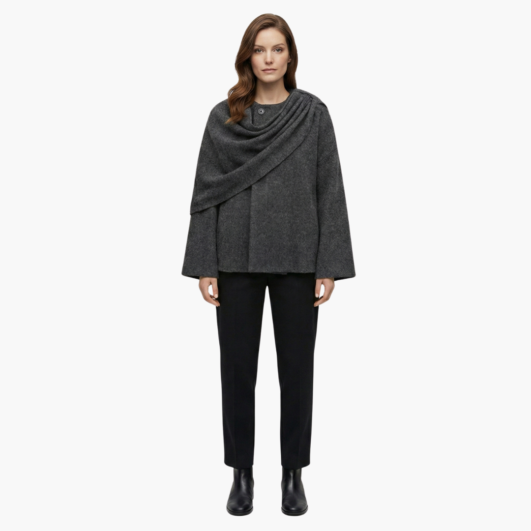 Elegant kvindes kappefrakke med en flydende silhuet og halstørklædekrave
