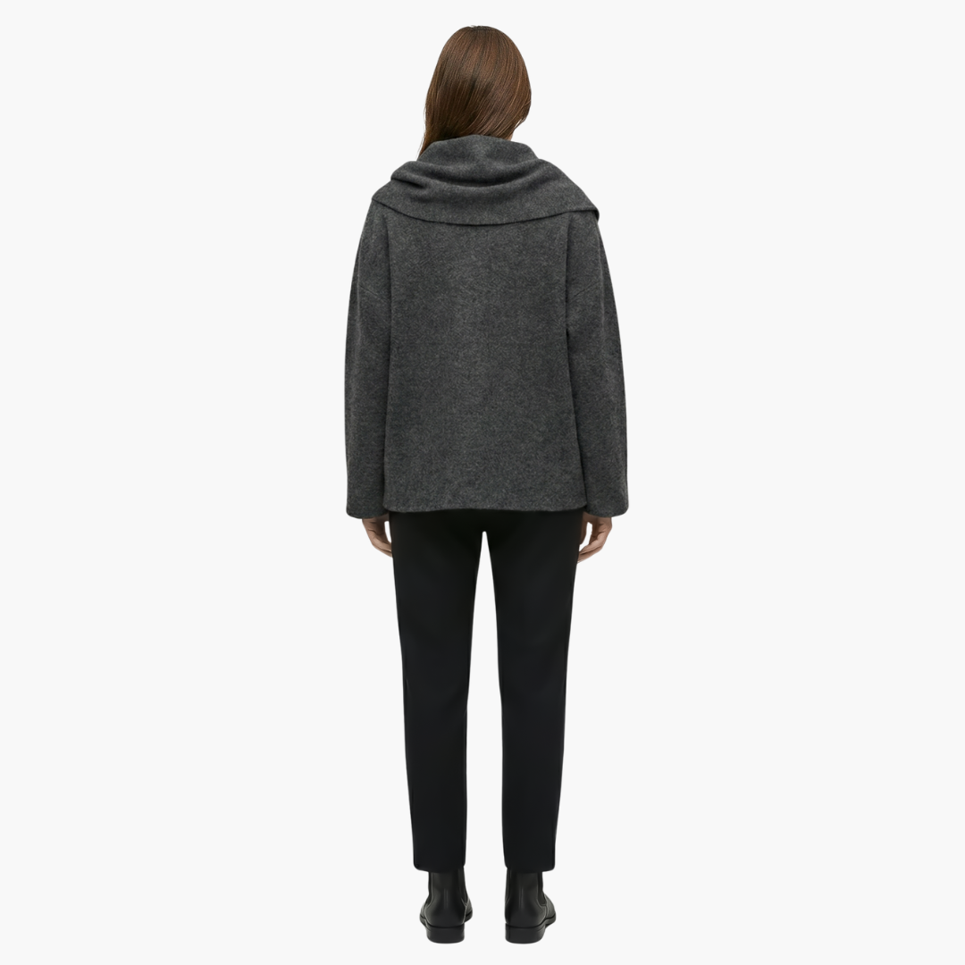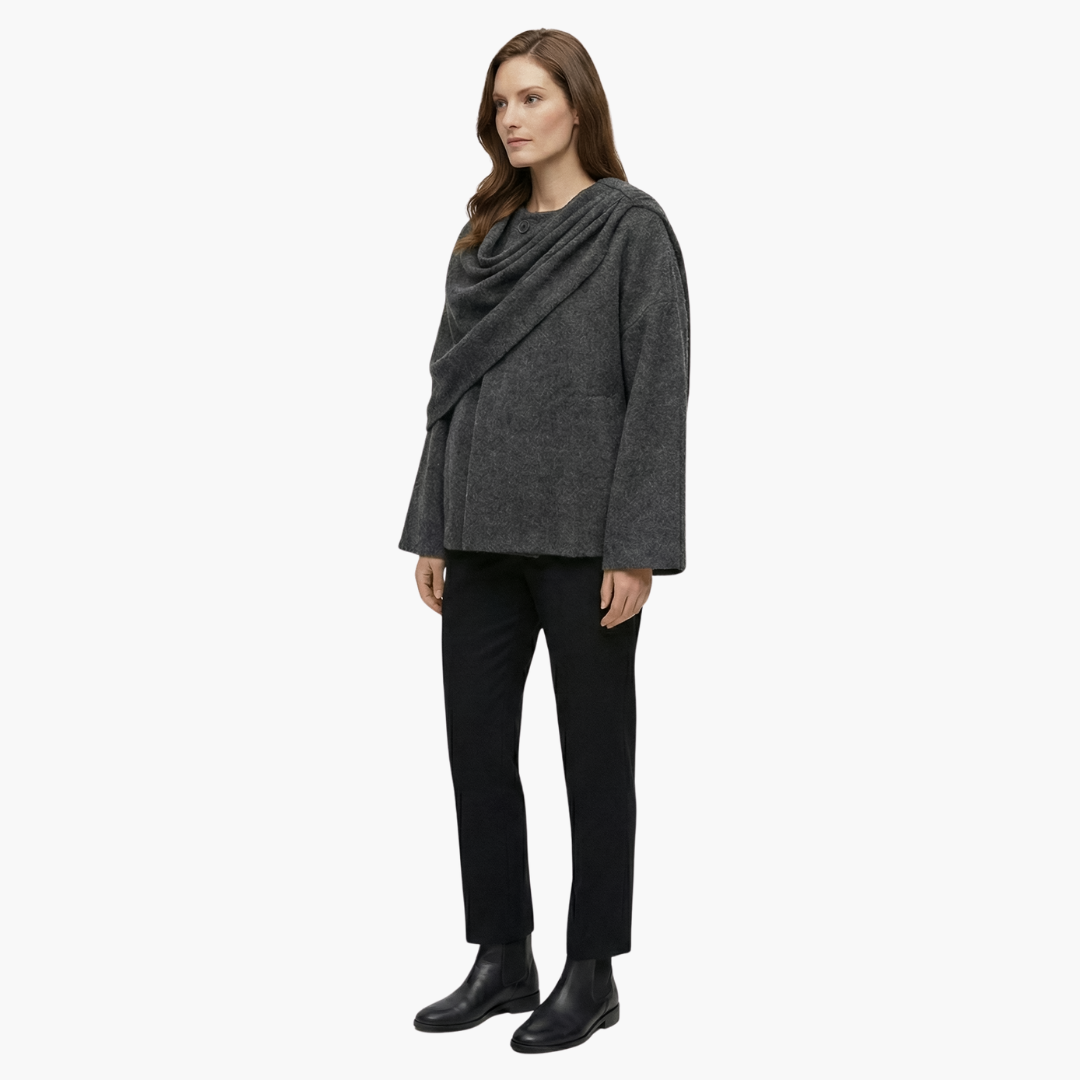 Kvinders kappefrakke med tørklædekrave og flydende stof