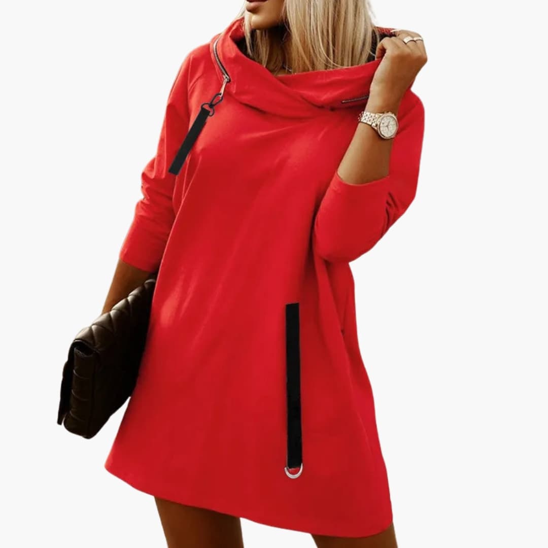 Langes bequemes Sweatkleid für Damen mit lockerem Schnitt