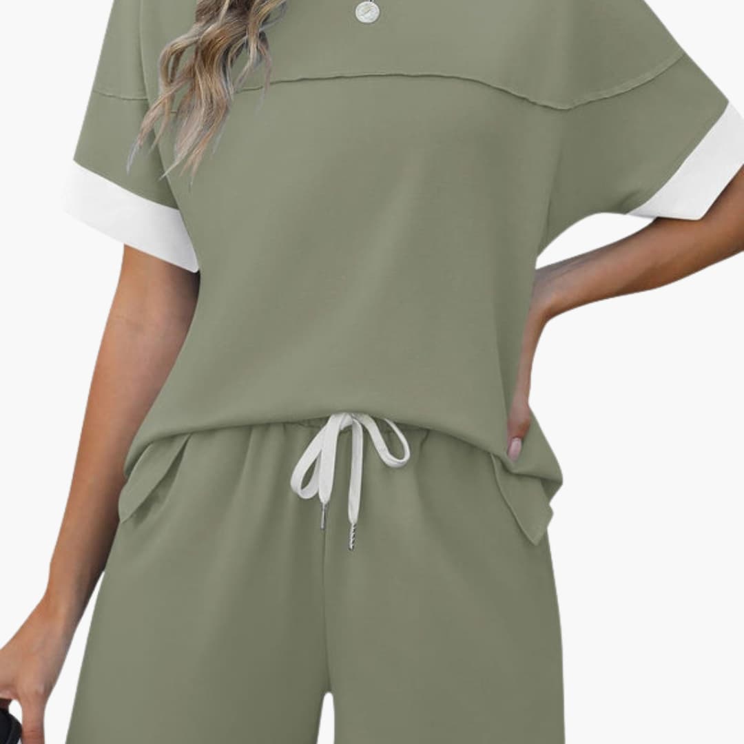 Σετ γυναικείων αθλητικών ρούχων με λεπτομέρειες κουμπιών και άνετη εφαρμογή
