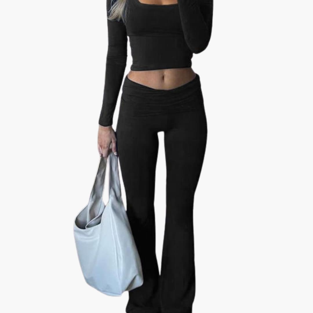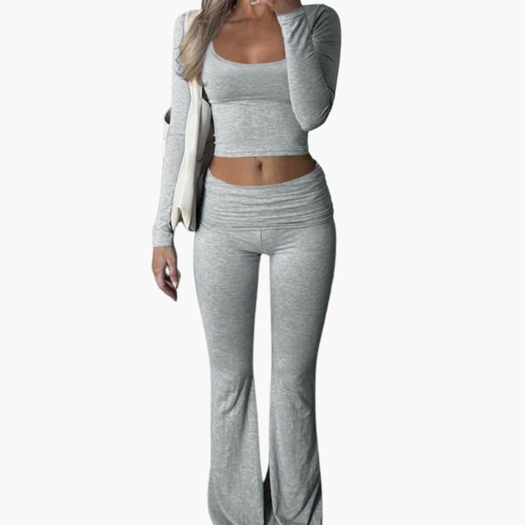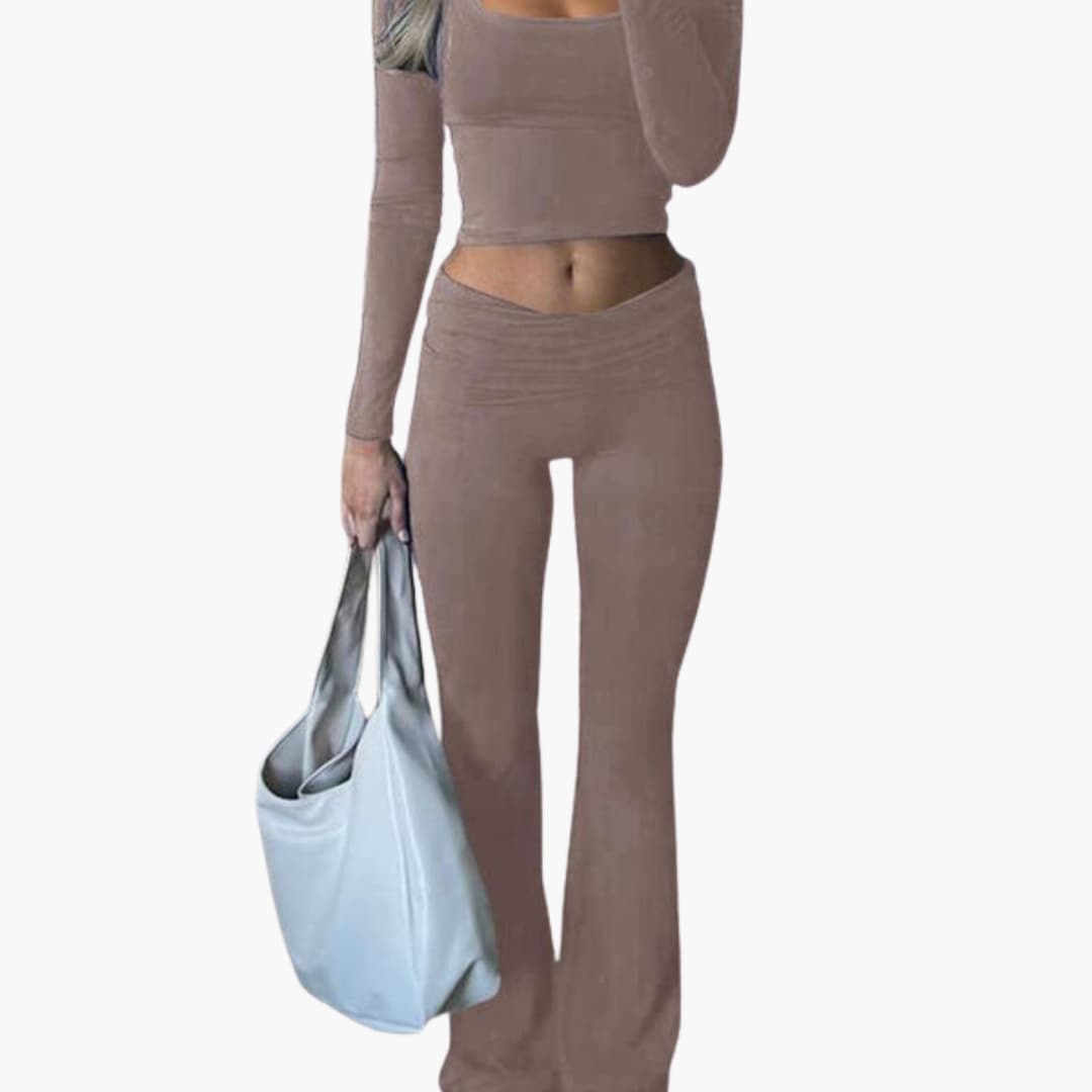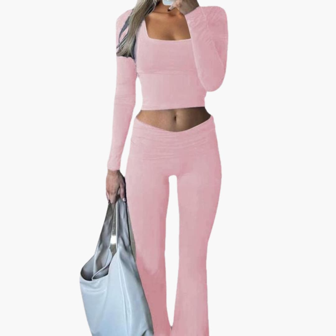 Σετ γυναικείων αθλητικών ρούχων με τετράγωνη λαιμόκοψη και φαρδιά παντελόνια