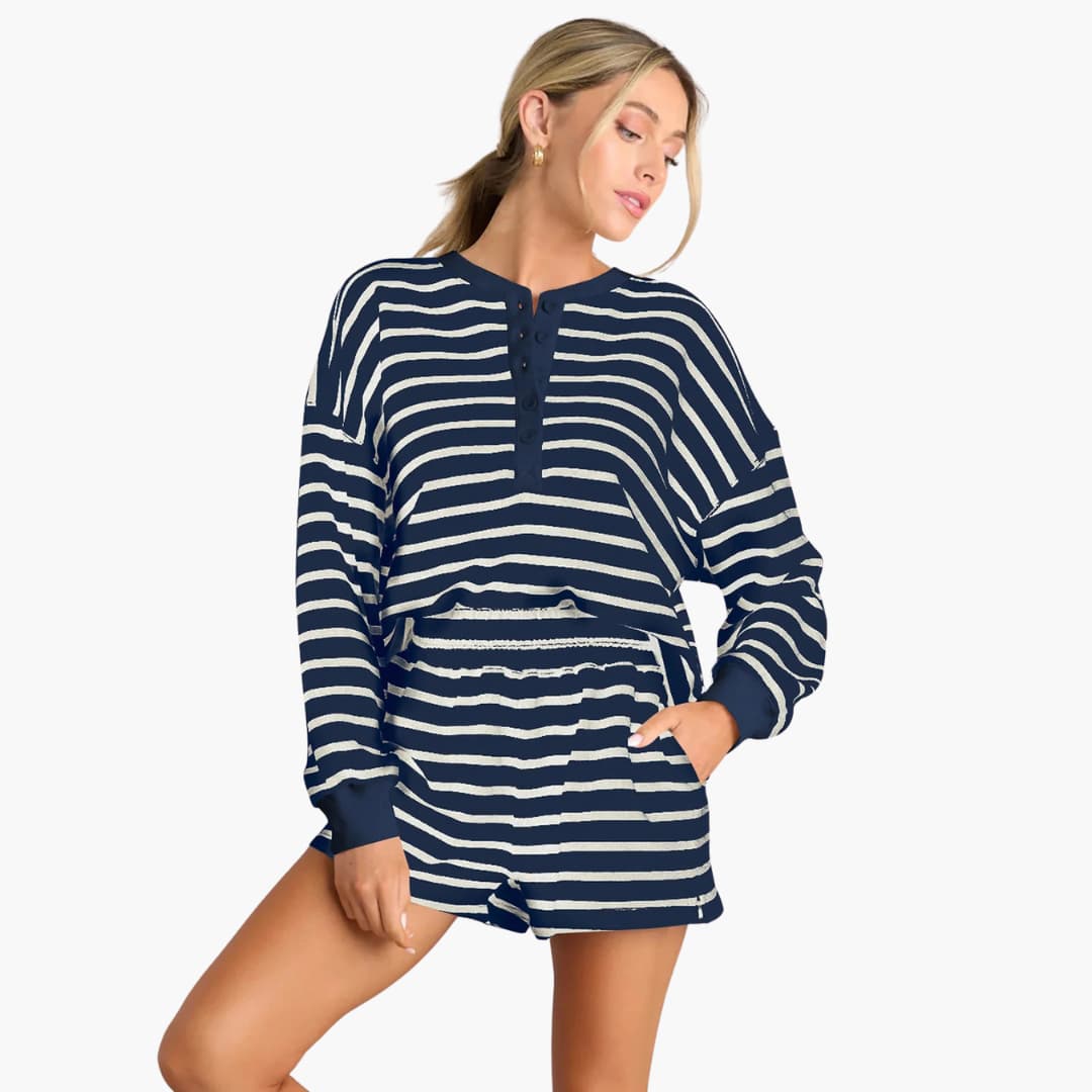 Σετ γυναικεία αθλητική ένδυση με ριγέ τοπ και σορτς με ελαστική μέση