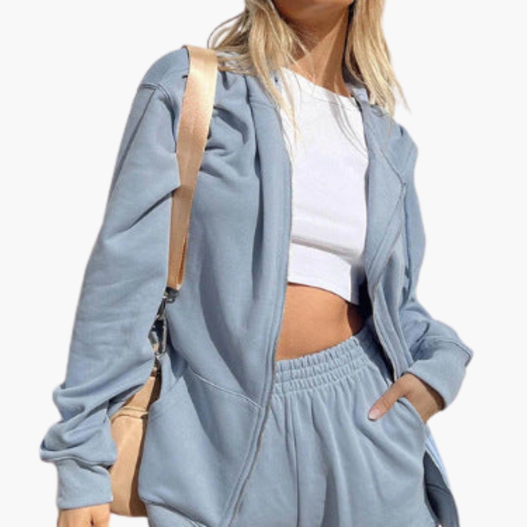 Σετ γυναικείων φόρμας με φούτερ με φερμουάρ και κουκούλα