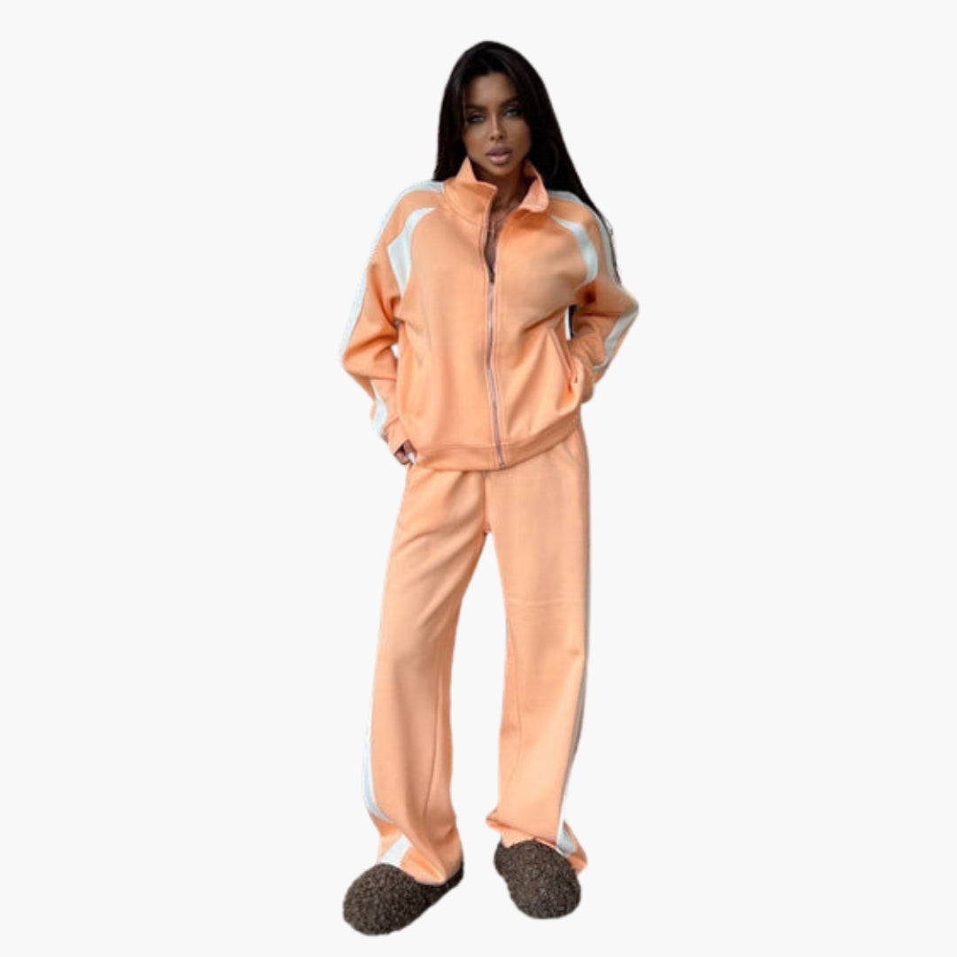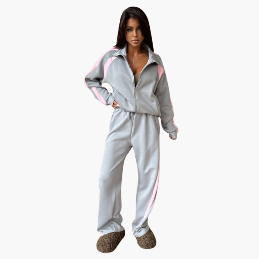 Σετ γυναικείων φόρμας με ζακέτα με φερμουάρ και παντελόνι