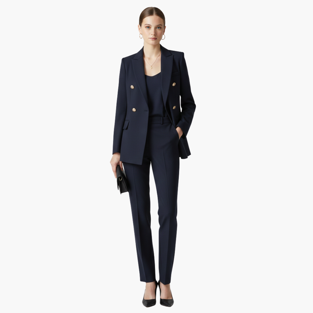 Γυναικείο κοστούμι με εφαρμοστή σακάκι και ίσια παντελόνια
