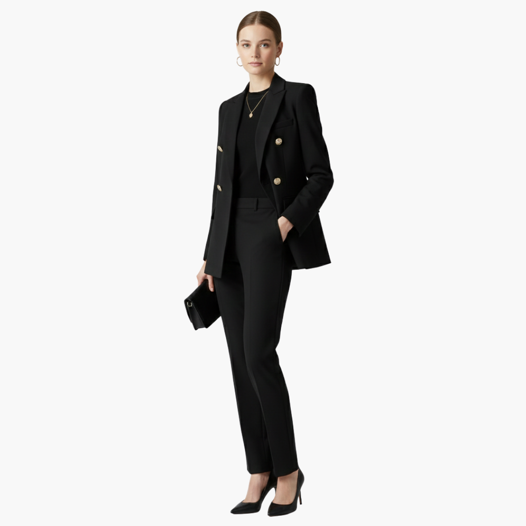 Σετ γυναικείου κοστουμιού με σακάκι με κουμπιά και ίσια παντελόνια