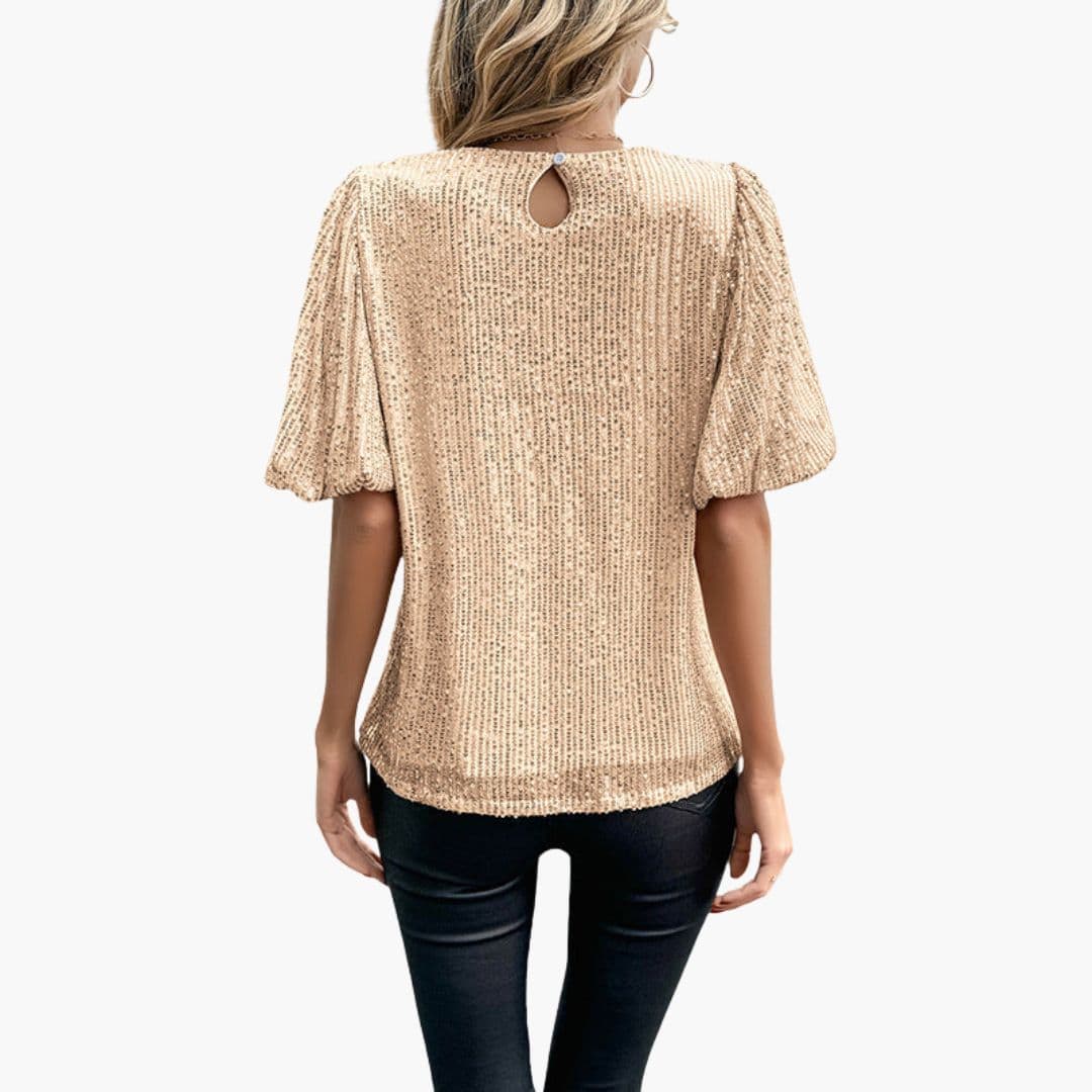 Γυναικείο Τοπ με Μανίκια με Βολάν και Λαμπερή Επιφάνεια
