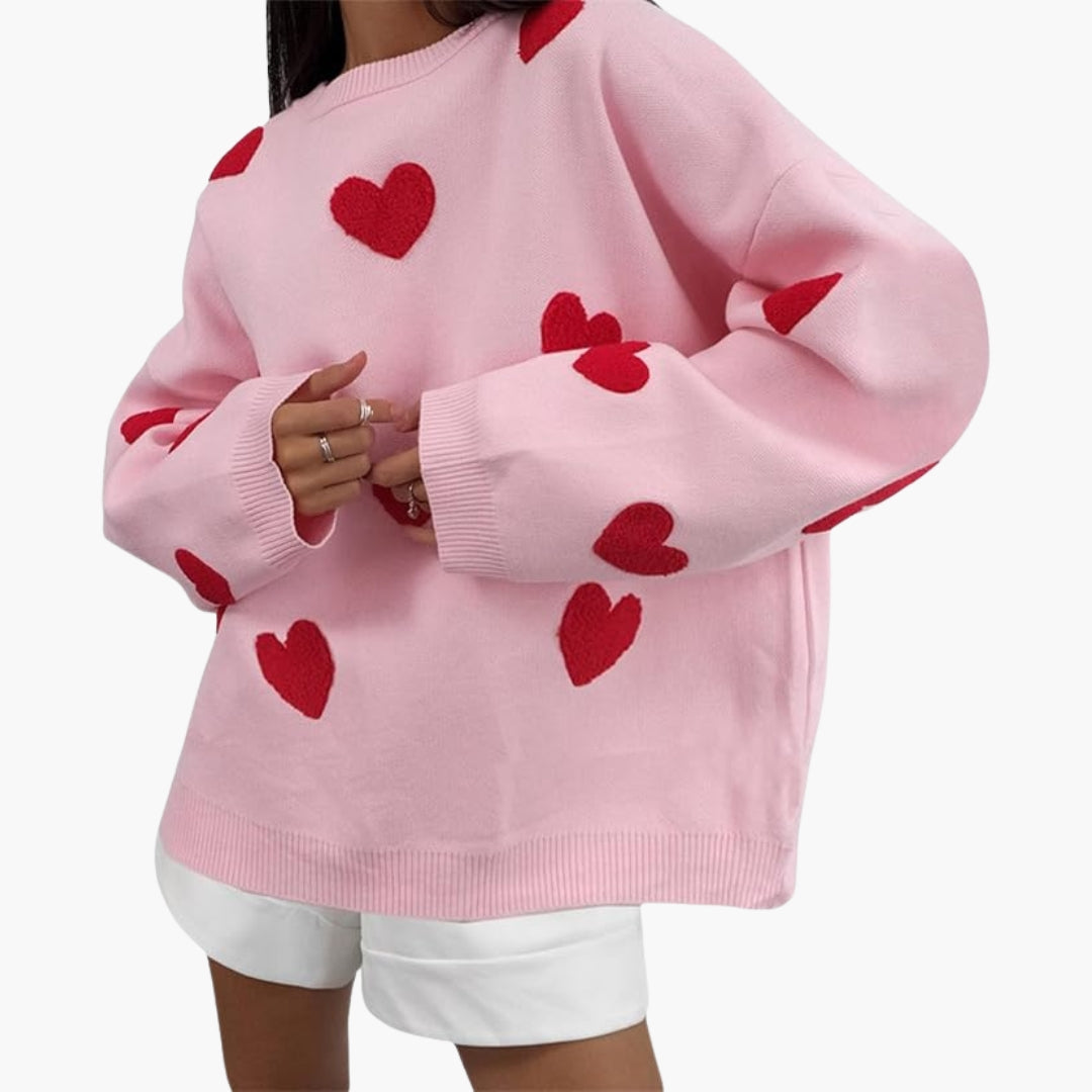Γυναικείο πουλόβερ με στρογγυλή λαιμόκοψη και σχέδια καρδιές