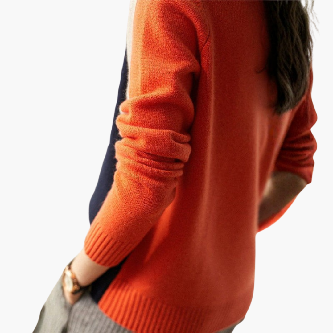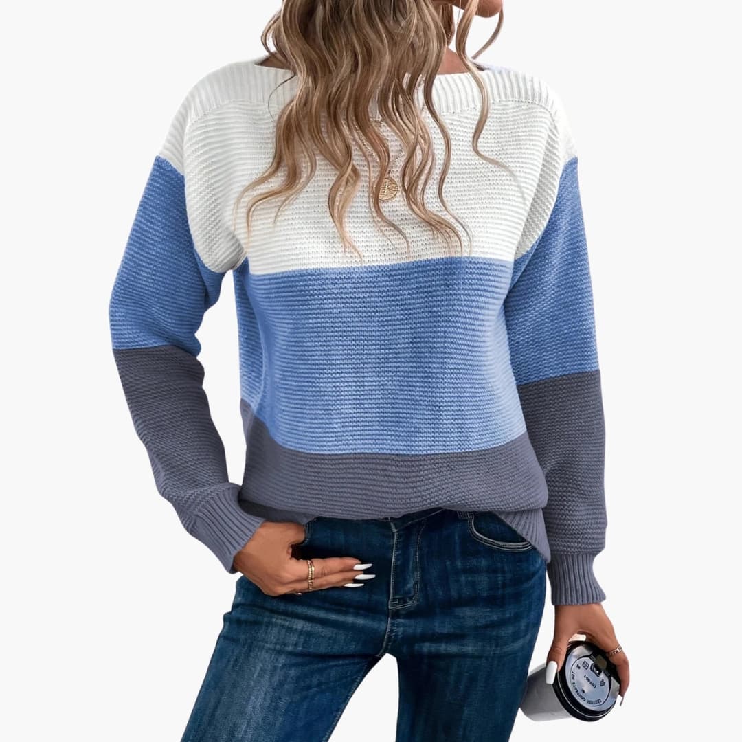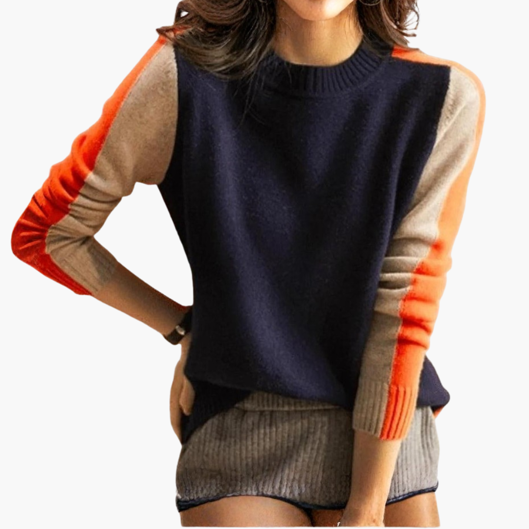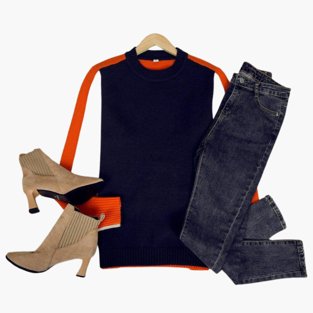 Γυναικείο πουλόβερ με μανίκια σε αντίθετο χρώμα και ριμπ τελείωμα