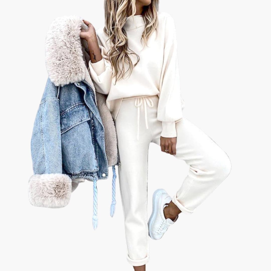 Σετ Γυναικείας Φόρμας με Φαρδιά Πουλόβερ και Παντελόνι Τζόγκινγκ με Ψηλή Μέση