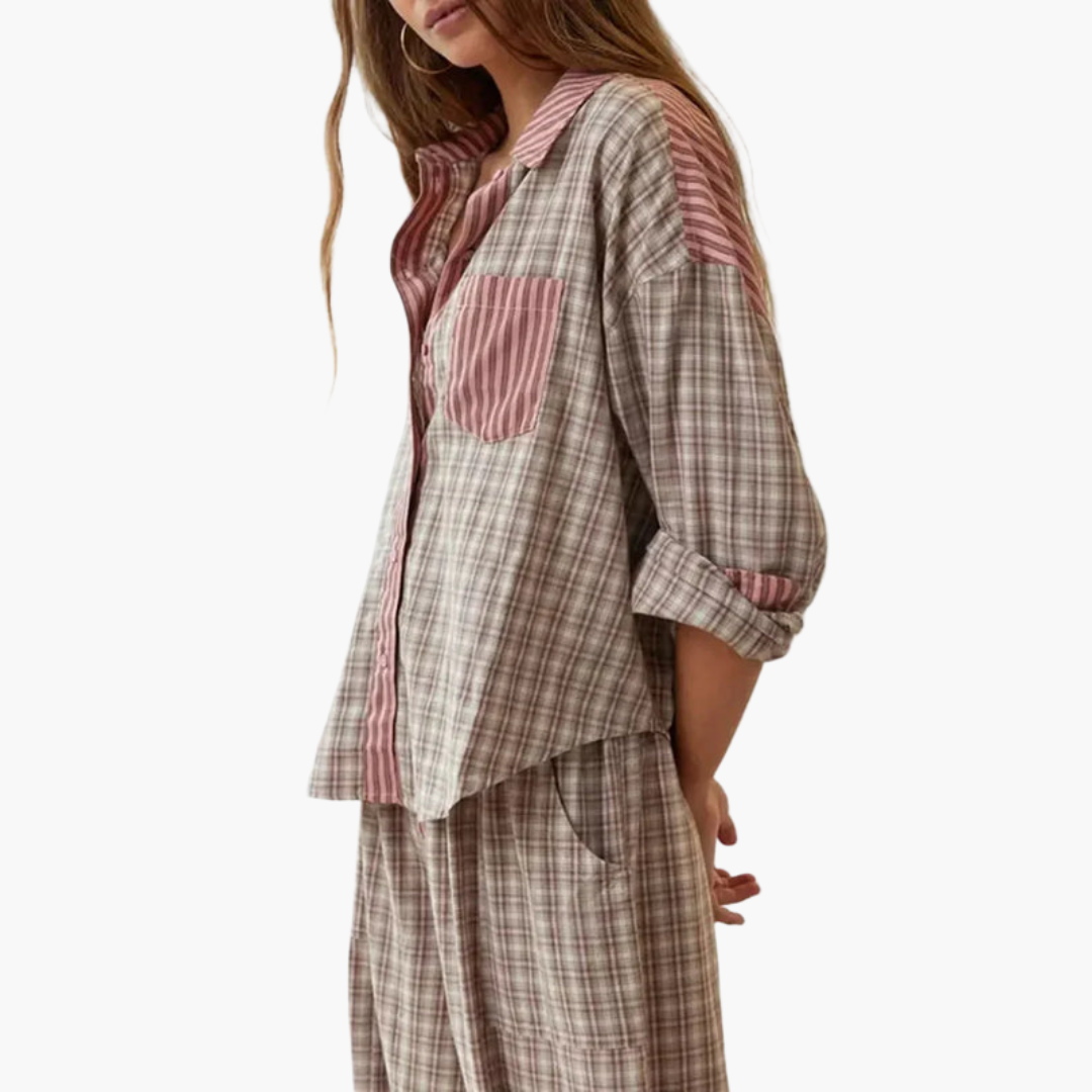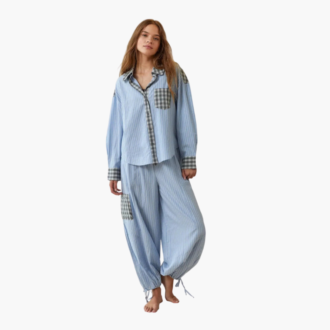 Σετ Πυτζάμες Γυναικείες με Κουμπιά και Ελαστική Μέση