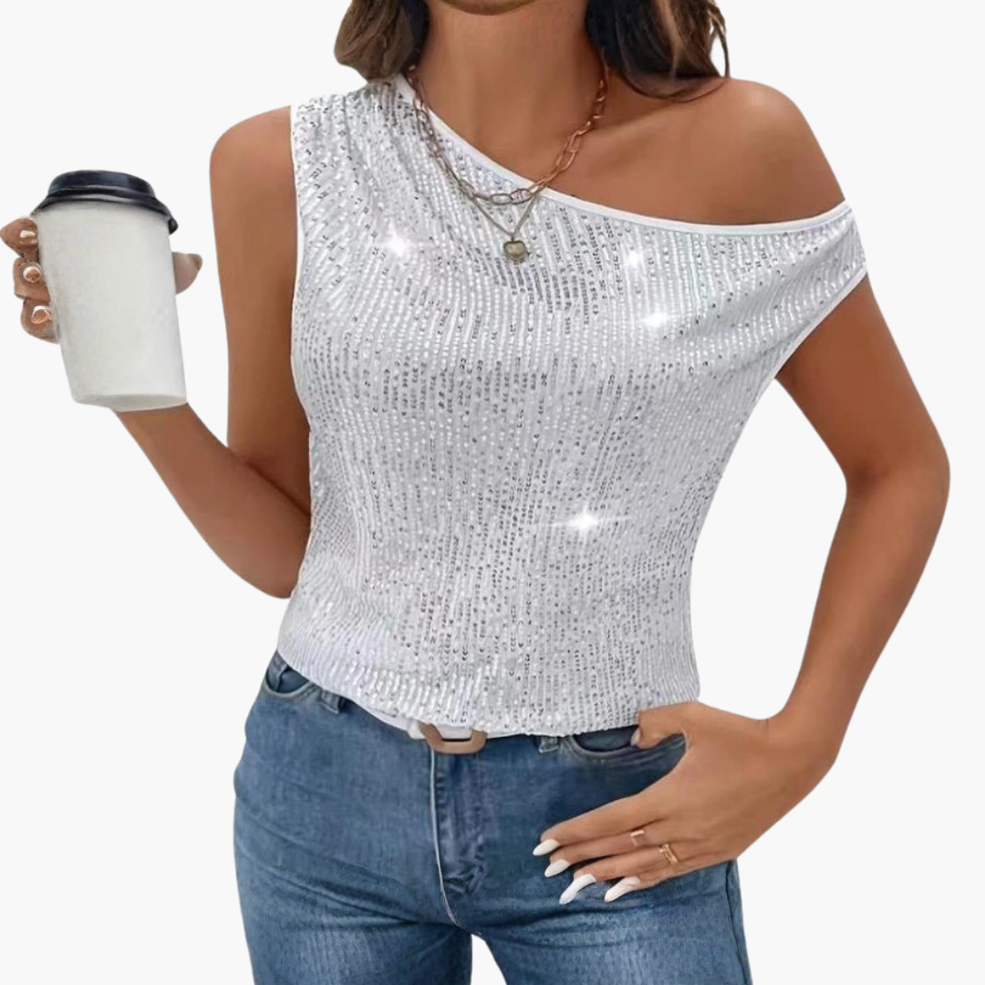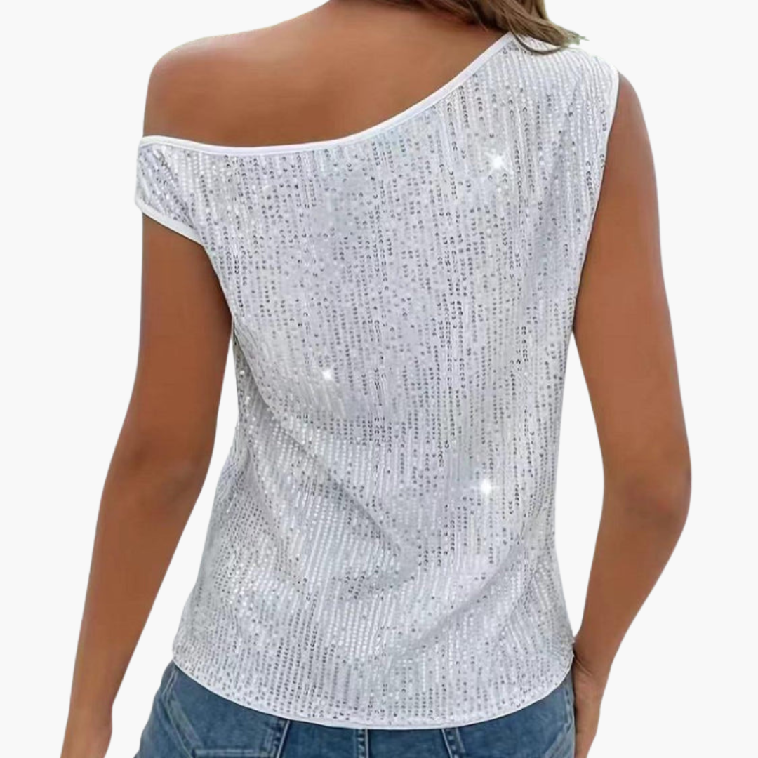 Γυναικείο Τοπ με Έναν Ώμο, Επιφάνεια με Παγιέτες και Εφαρμοστή Γραμμή