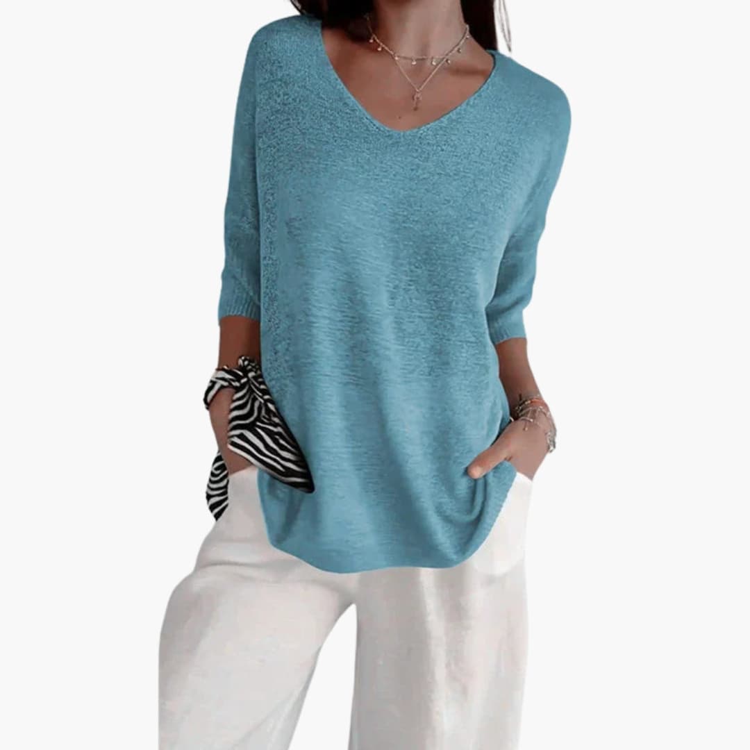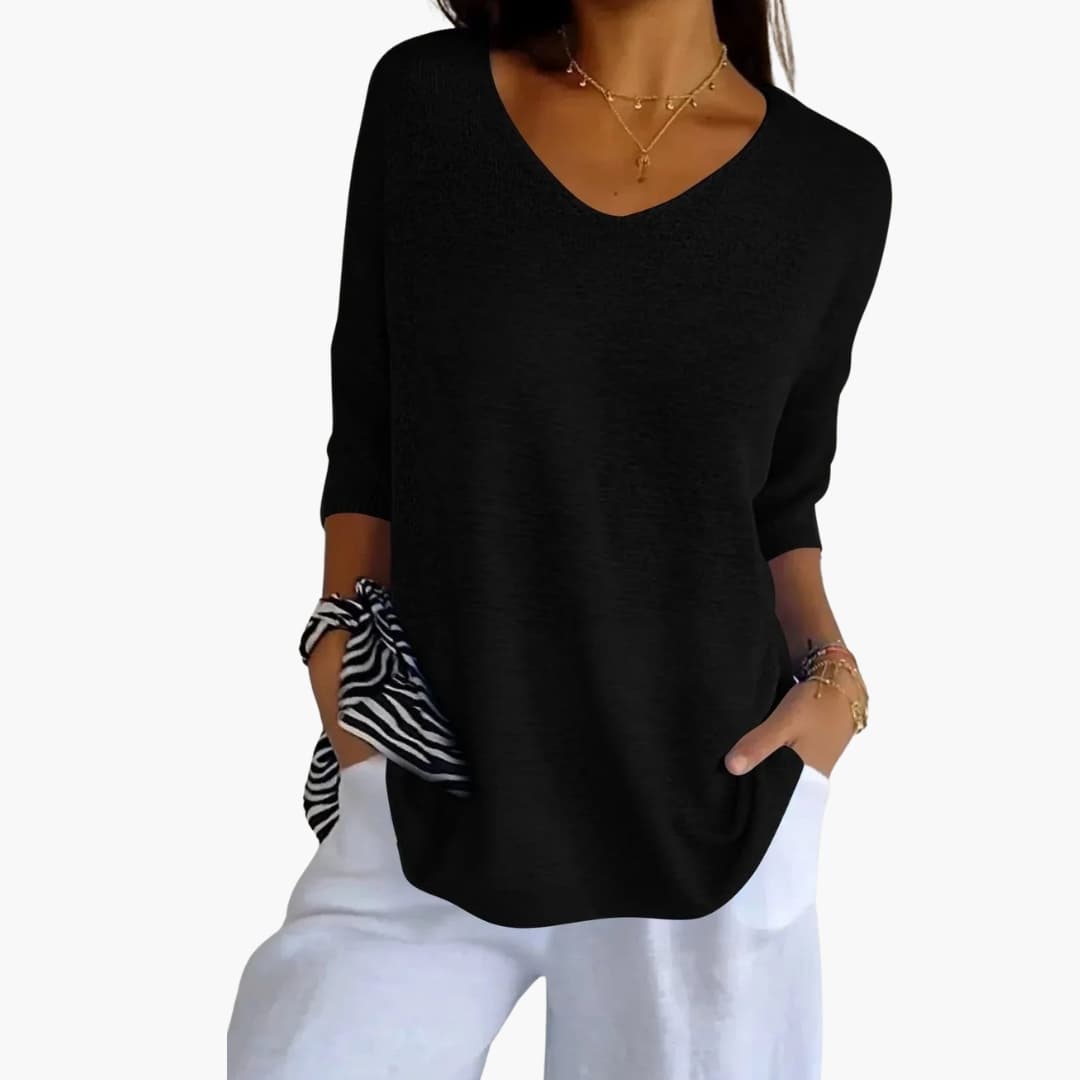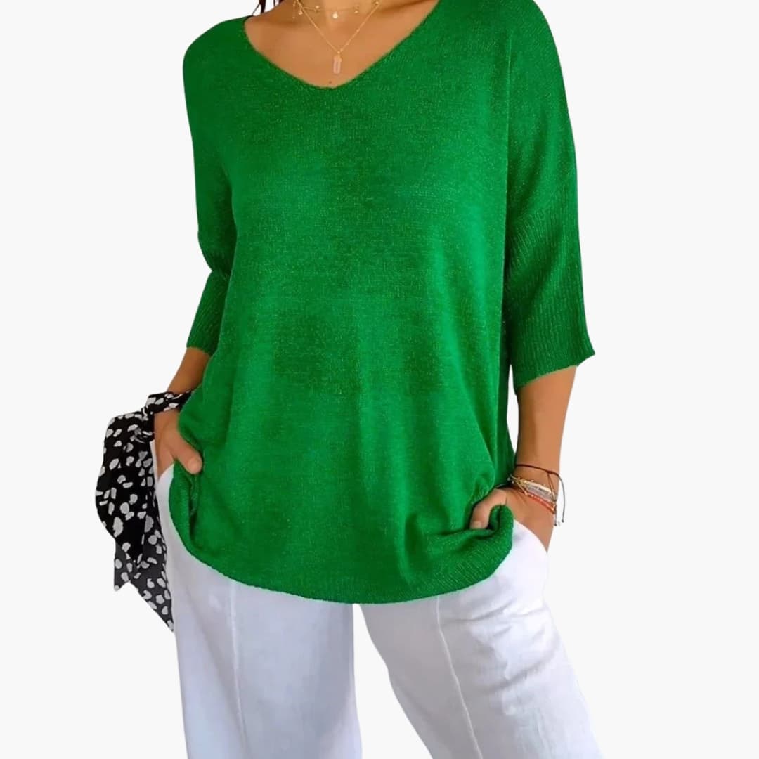 Πλεκτό τοπ γυναικείο με V-λαιμόκοψη και άνετη εφαρμογή