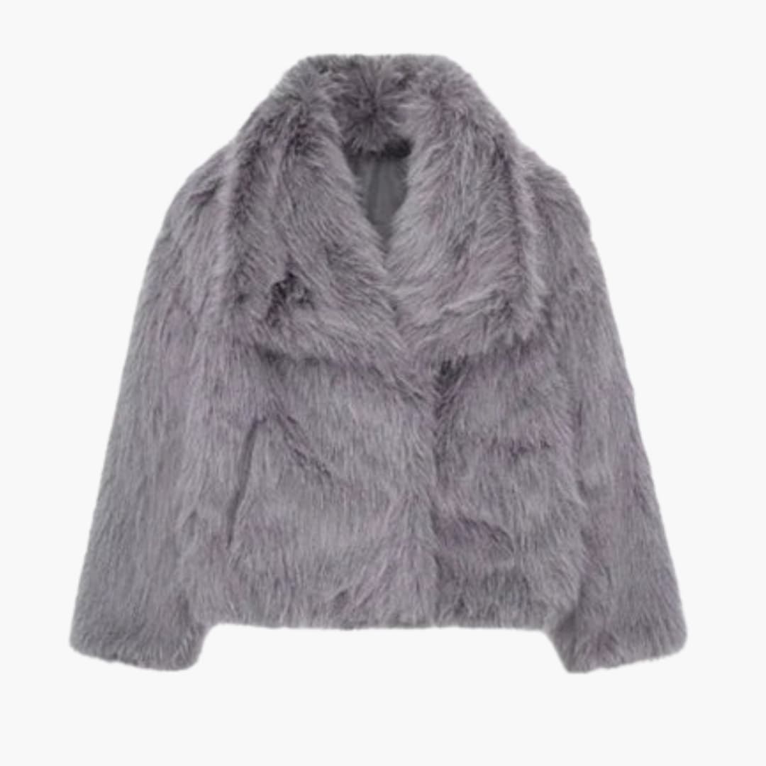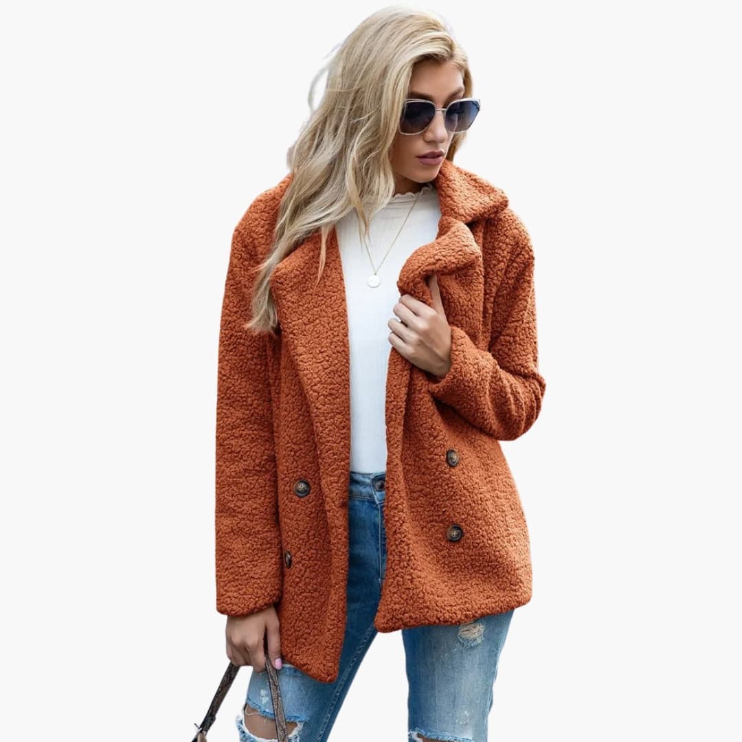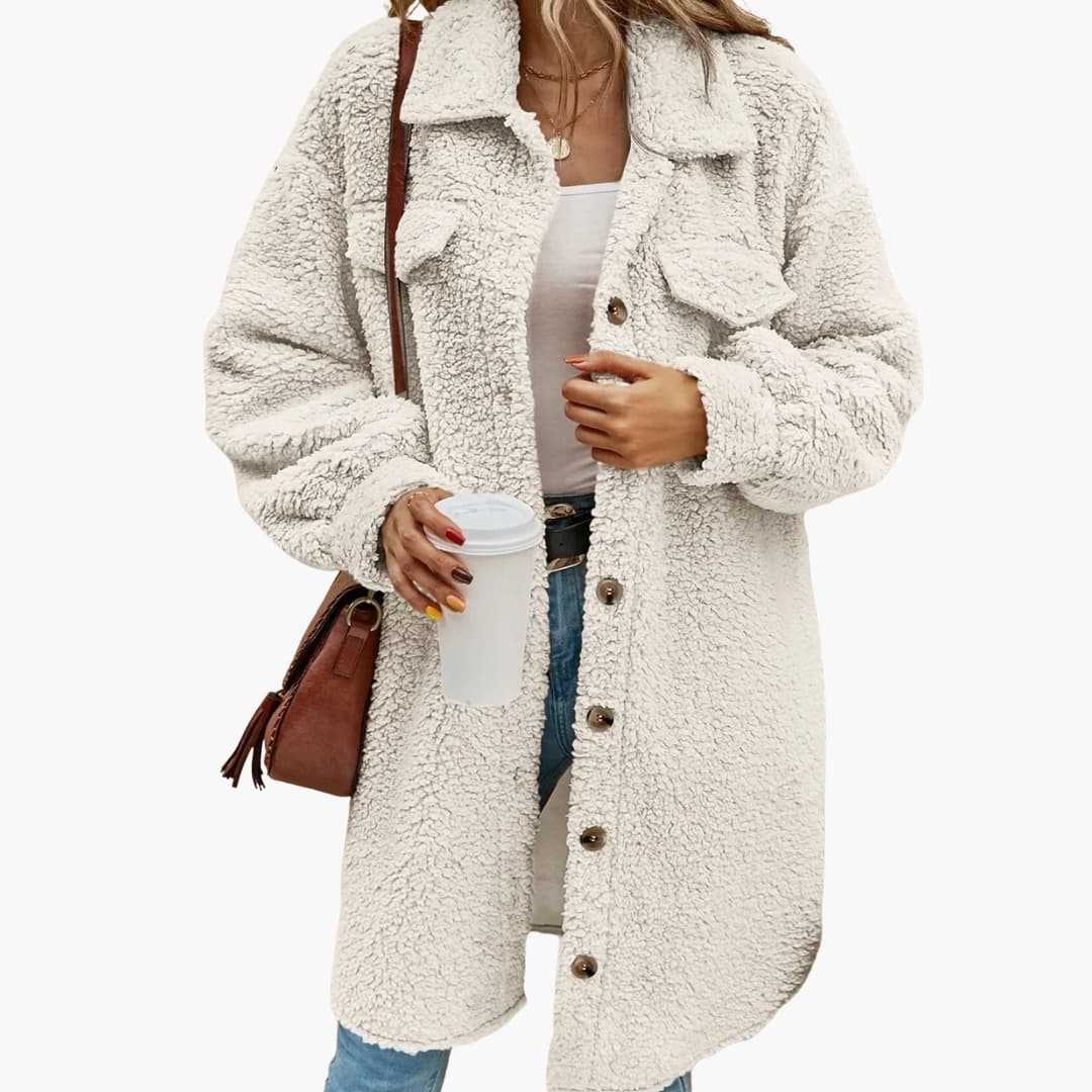 Γυναικείο μακρύ παλτό Teddy από βελούδο με φαρδύ γιακά