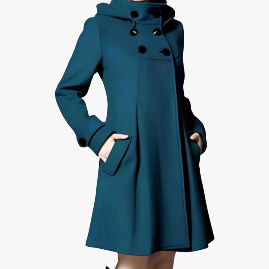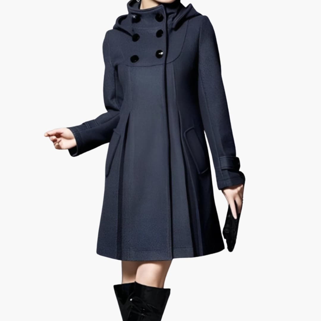 Γυναικείο μακρύ παλτό με κουκούλα και κλείσιμο με κουμπιά