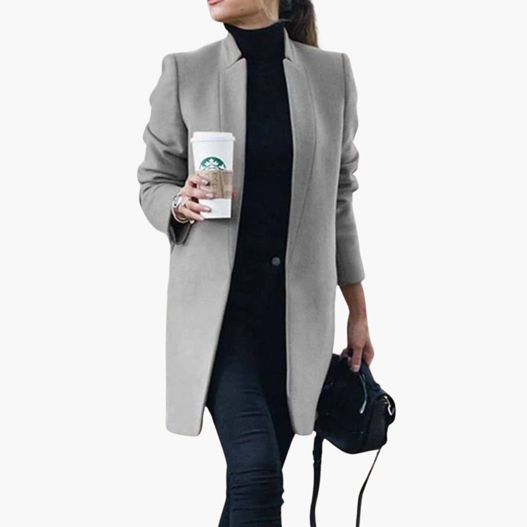 Γυναικείο Μακρύ Παλτό με Στενή Γραμμή και Εμπρόσθιο Άνοιγμα