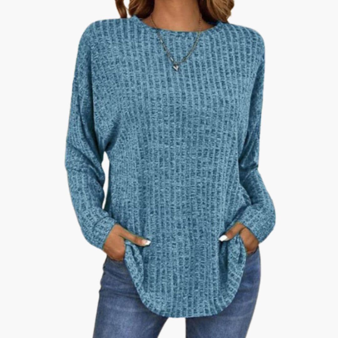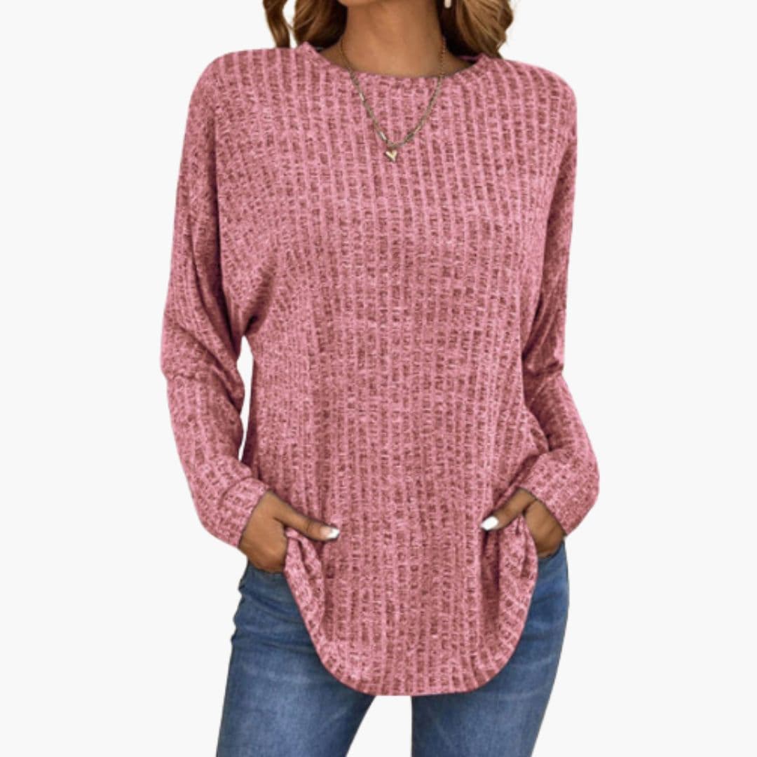 Γυναικείο πλεκτό τοπ με μακριά μανίκια και στρογγυλή λαιμόκοψη