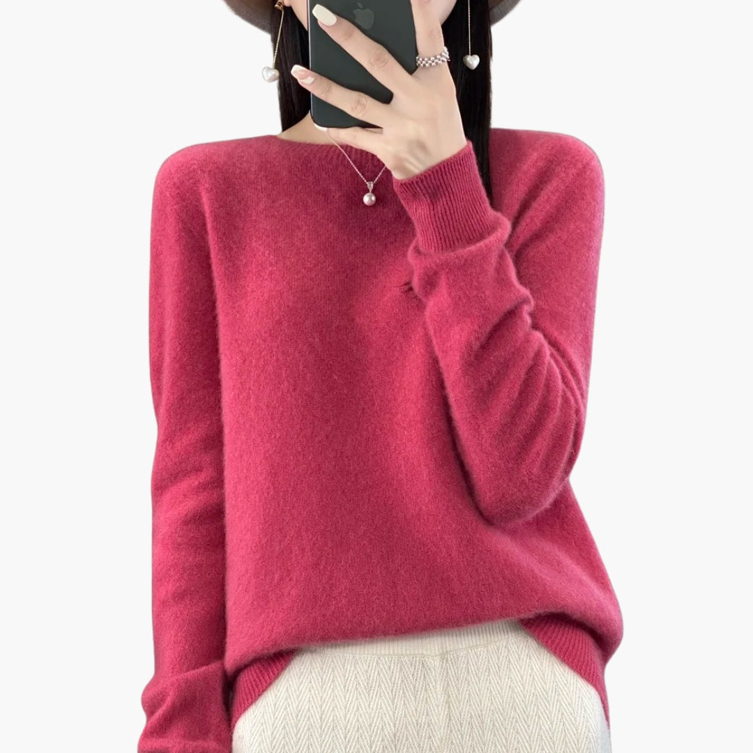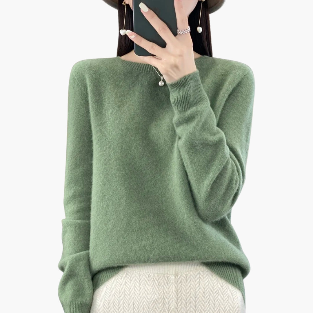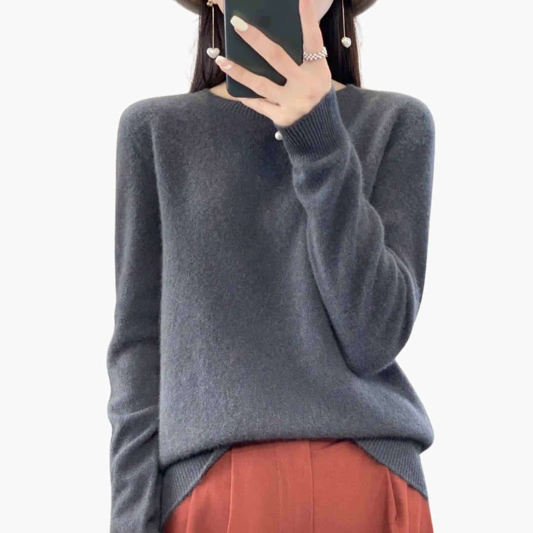 Γυναικείο πλεκτό πουλόβερ με στρογγυλή λαιμόκοψη και μακριά μανίκια