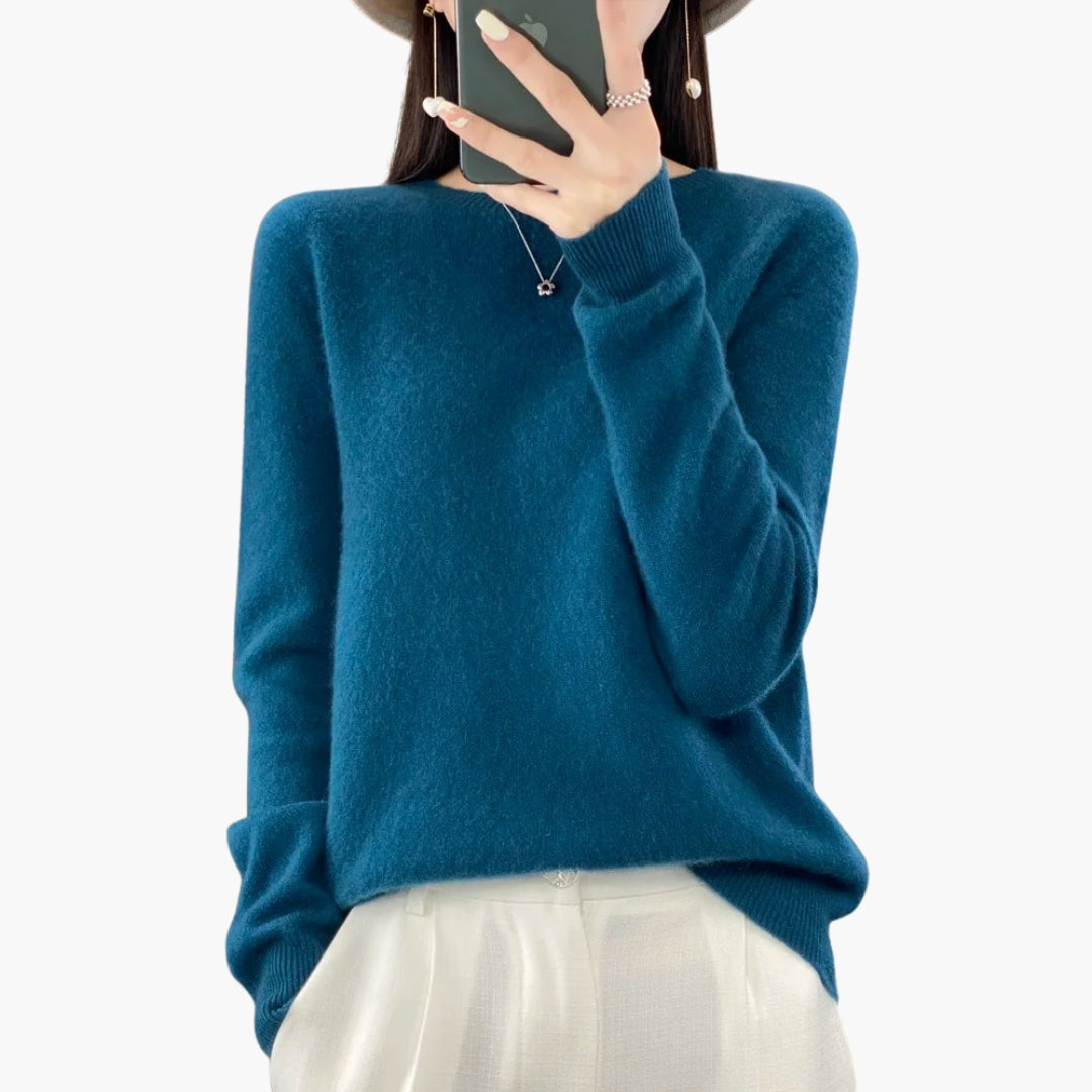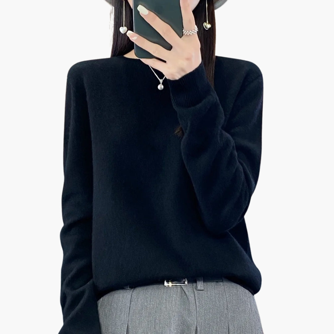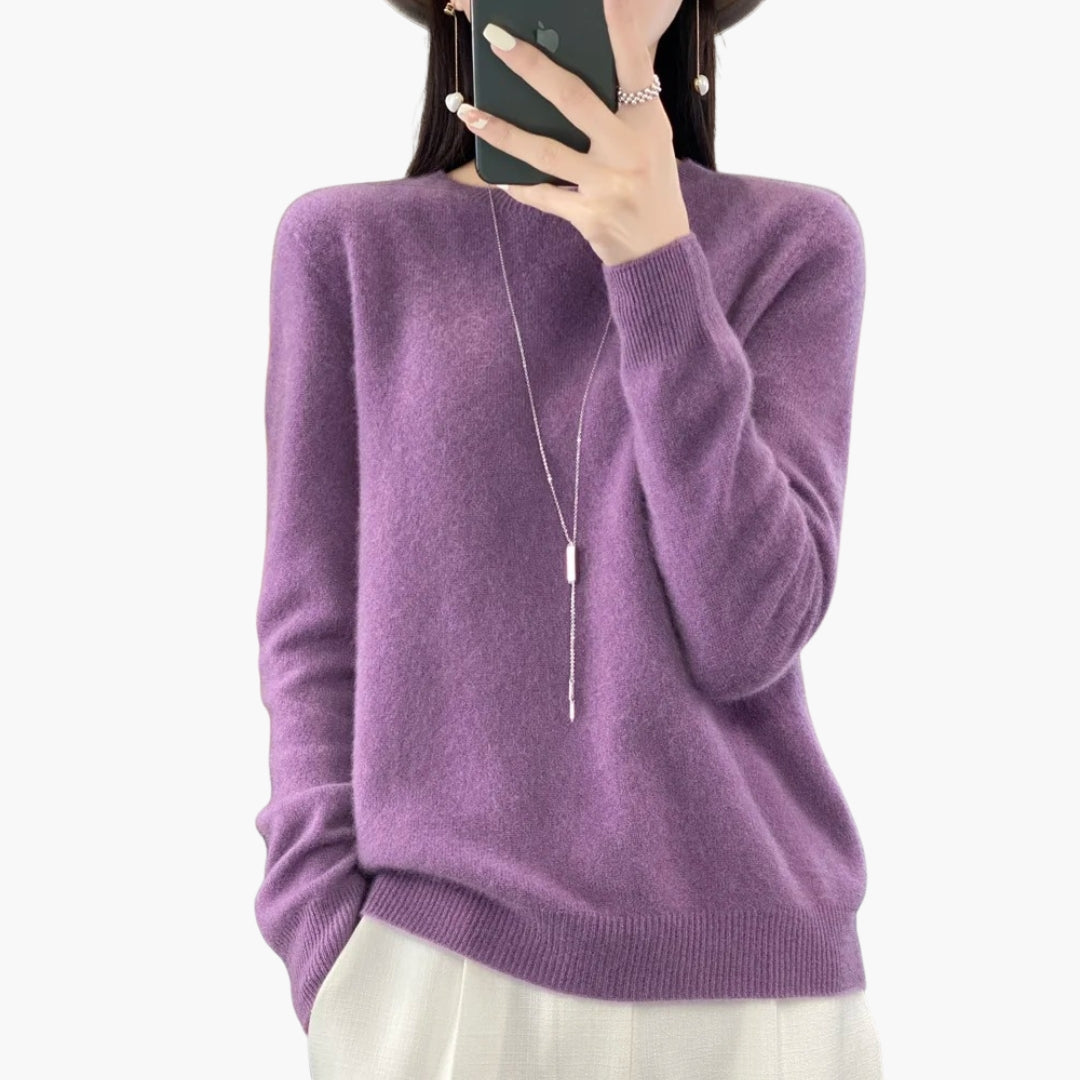 Γυναικείο πλεκτό πουλόβερ με στρογγυλή λαιμόκοψη και μακριά μανίκια
